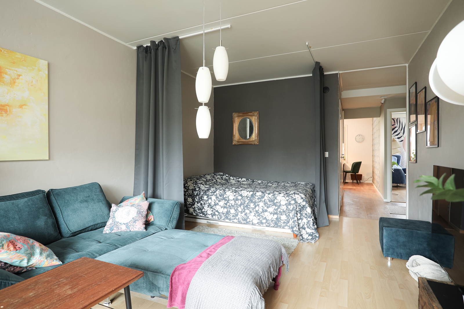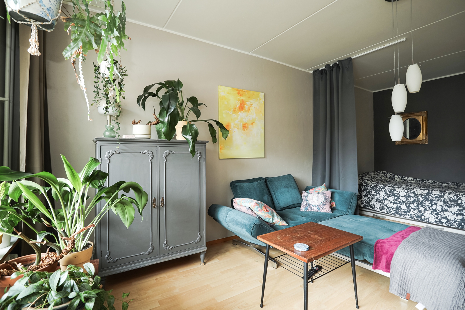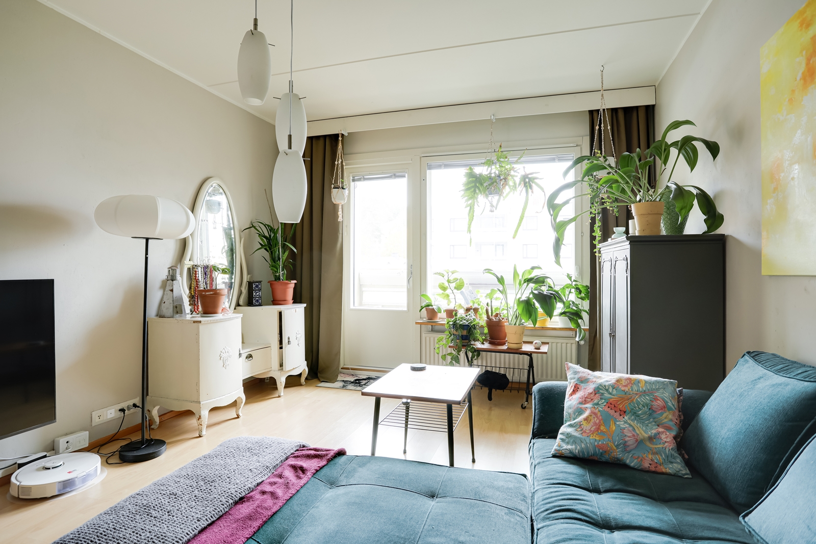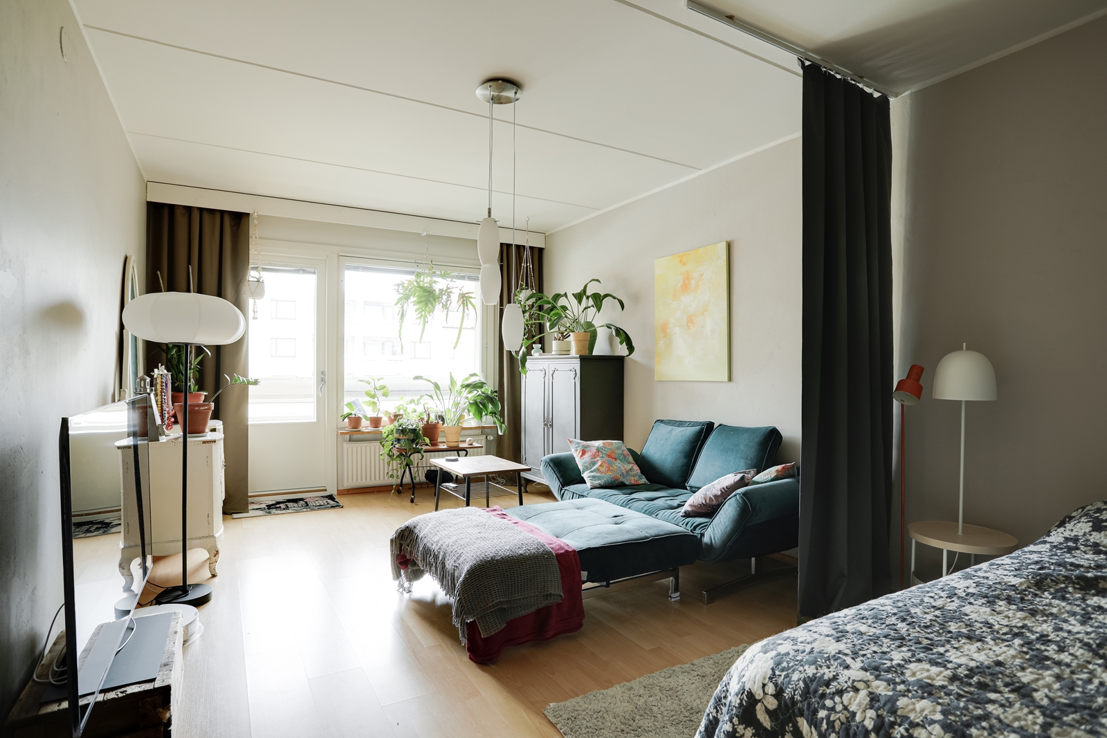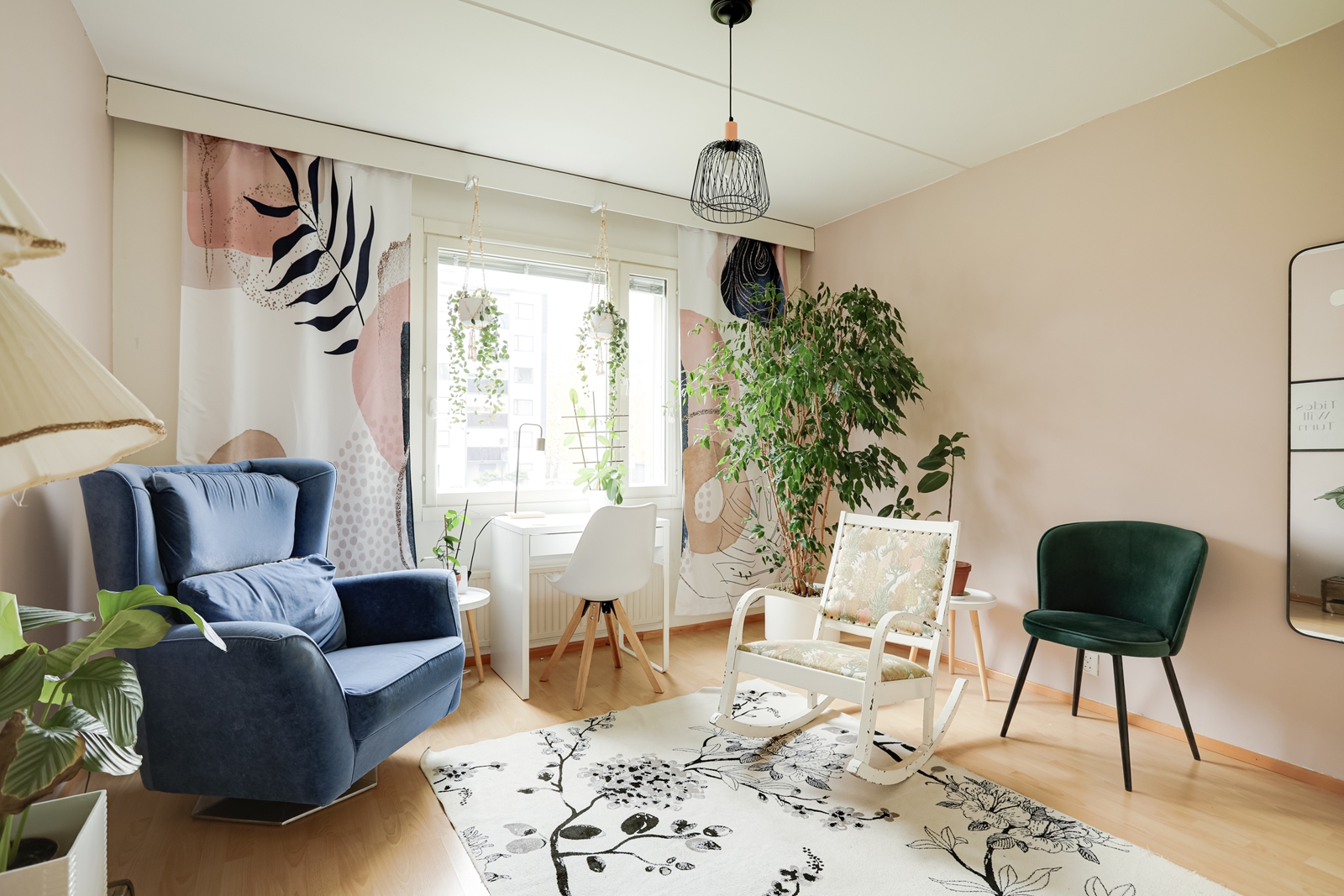 | Olohuoneen kuvaus | Seinät (maali), lattiat (laminaatti) |