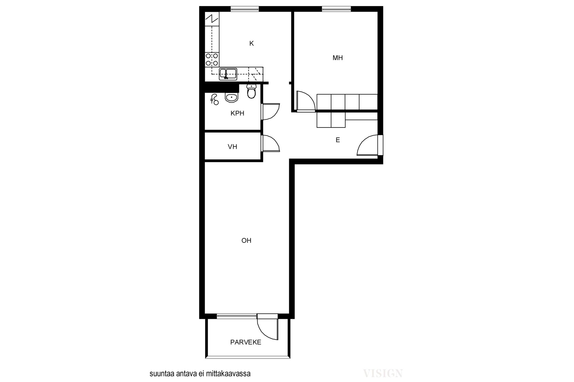 | Huoneistoselitelmä | 2h,k,kph,vh,lasitettu parveke |