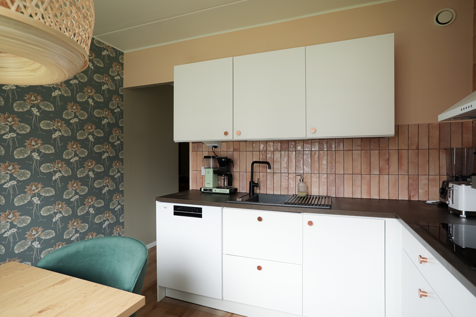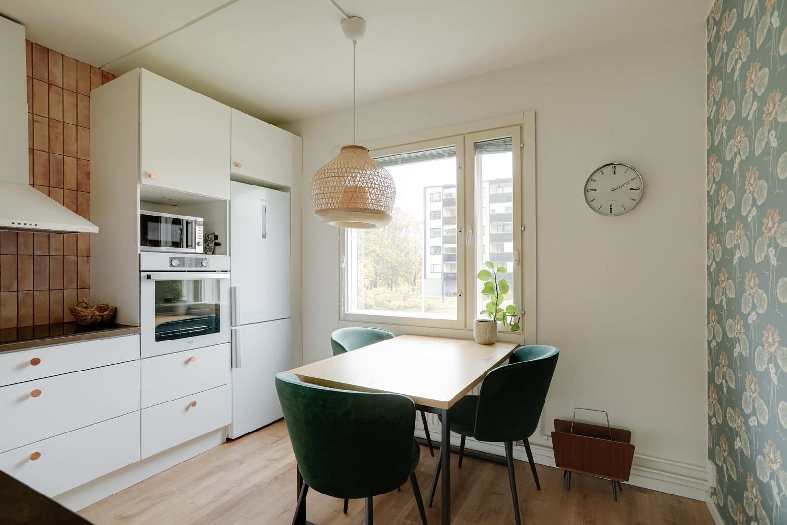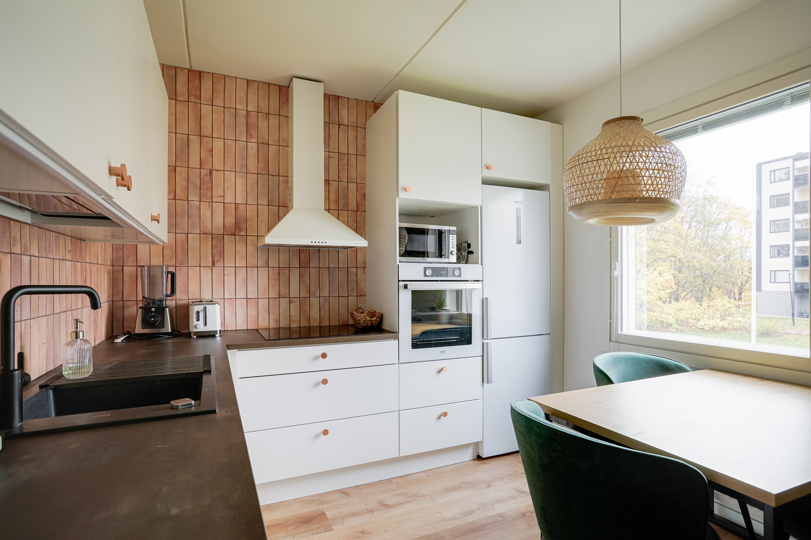 | Keittiön kuvaus | Liesi (Induktioliesi), työtasot (laminaatti), seinät (maali ja tapetti), lattiat (vinyyli), jääkaappipakastin, erillisuuni ja astianpesukone, Keittiö on kokonaisuudessaan remontoitu 09/2024, jolloin koko tila purettiin. Uudet kaapistot (Charmia) koneineen asennettiin sekä myös lattia- ja seinäpinnat uusittiin. |