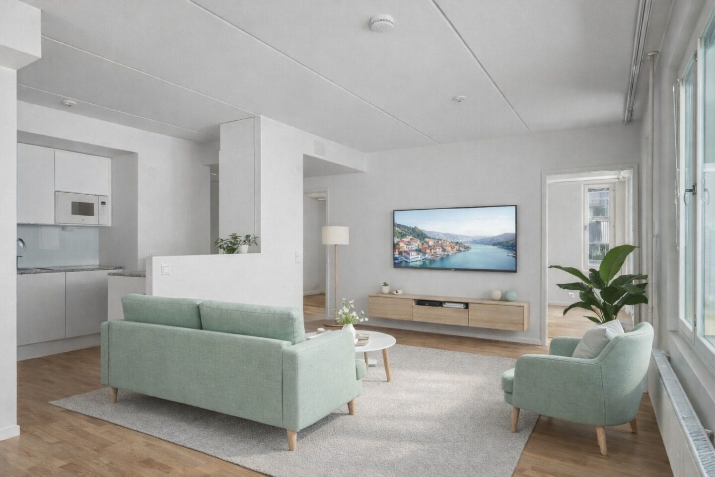 Asuntoon on tehty laadukkaita muutostöitä, kuten kotimaiset Liune-massiivipuuliukuovet, jotka tuovat tyylikkyyttä, parantavat äänieristystä ja lisäävät asumismukavuutta, erityisesti etätyössä ja perhekäytössä.