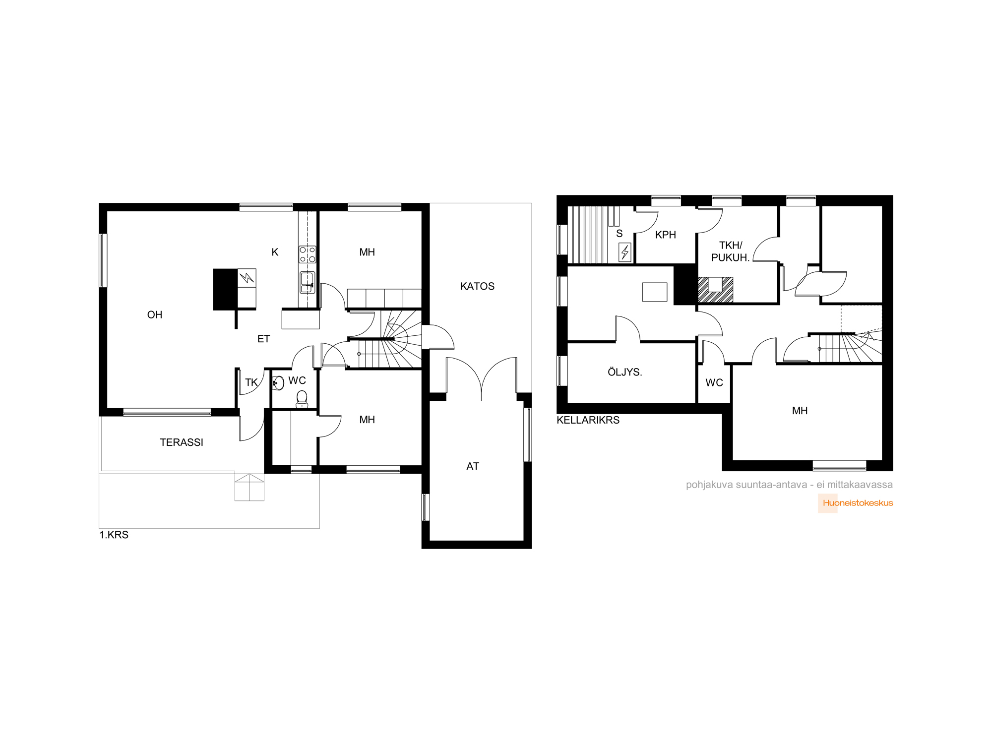 Alakerta: Alakerrassa on yksi makuuhuone lisää, erillinen wc, sekä kodin sauna- ja rentoutumisosasto. Tunnelmallisesta takka- ja pukuhuoneesta on käynti pesuhuoneeseen ja saunaan. Lisäksi käytännöllisyyttä tuo vanhanajan kylmäkellari.