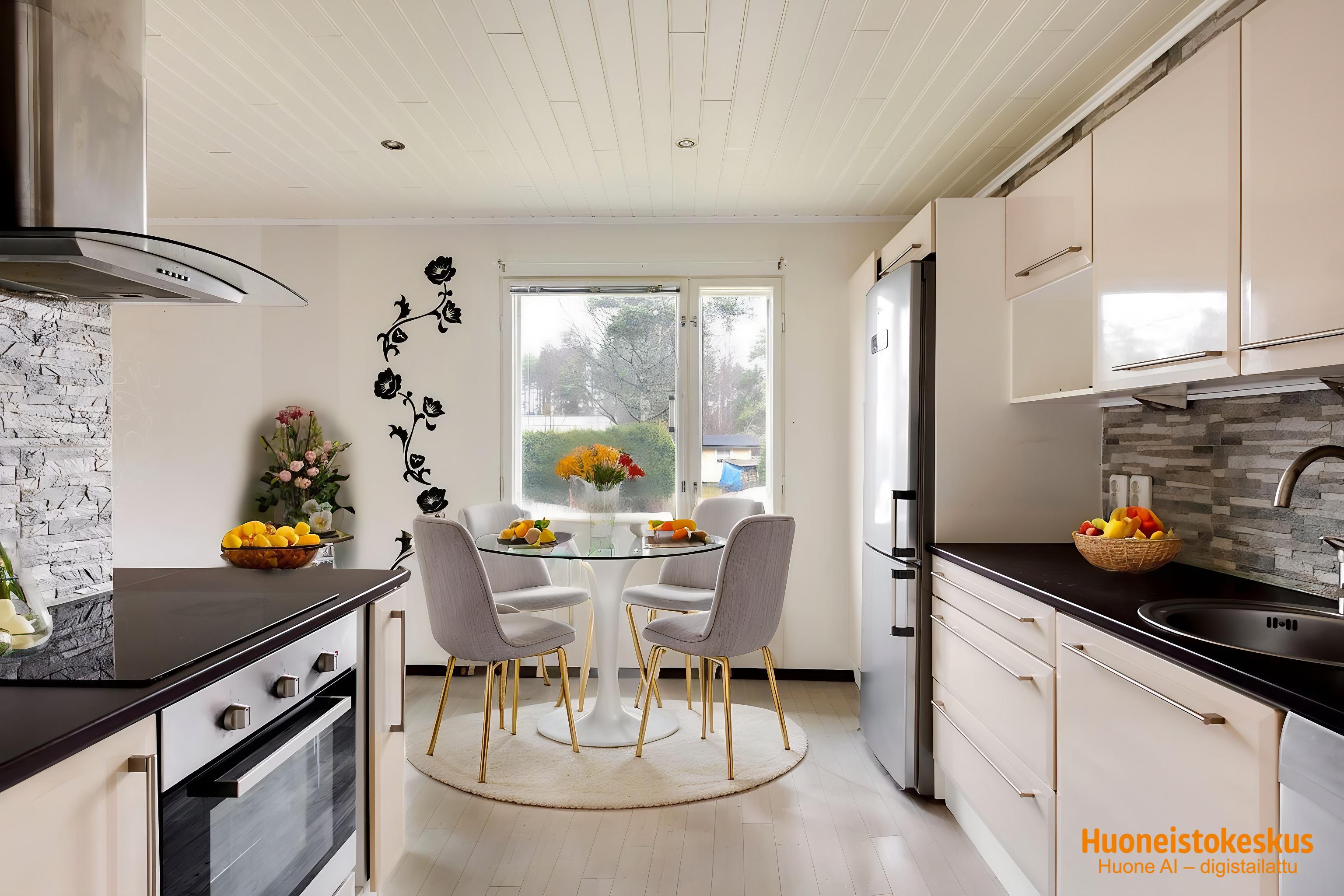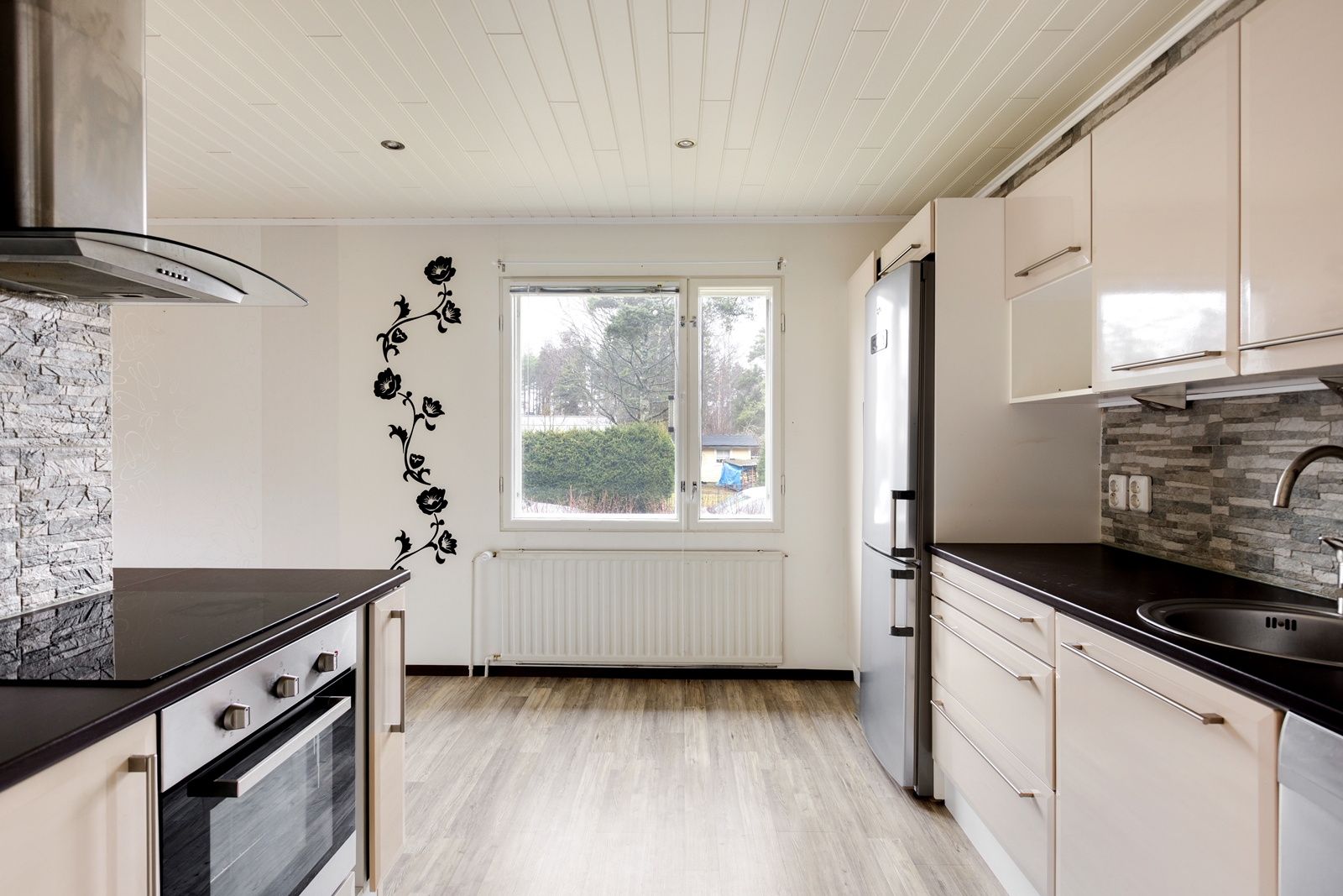 | Keittiön kuvaus | Liesi (Induktioliesi), lattiat (laminaatti), jääkaappipakastin, astianpesukone, liesituuletin ja liesi |