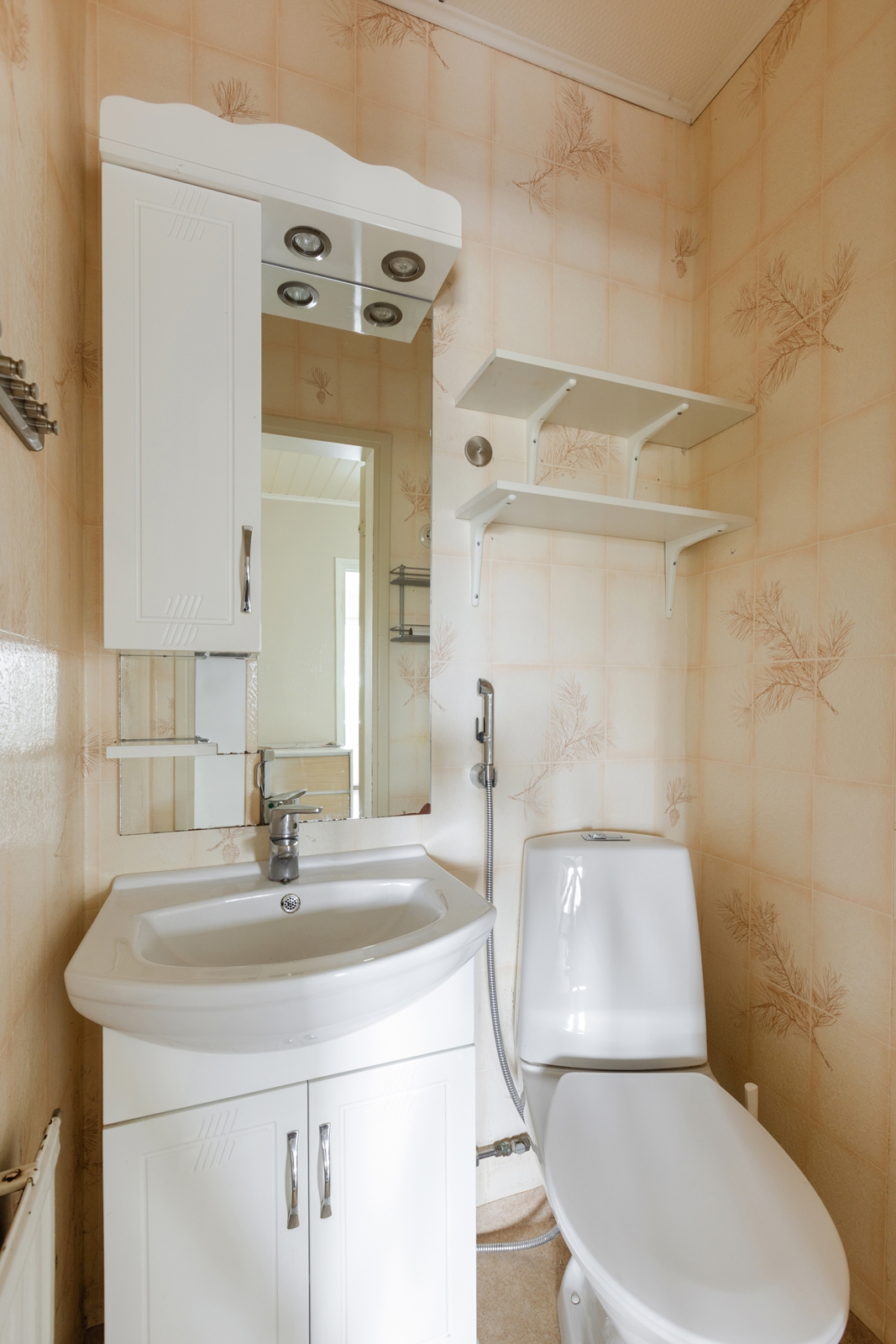 | WC-tilojen kuvaus | Lukumäärä: 2, WC-istuin (alakerran wc:n lattia laatta, yläkerran lattia muovi), bidee-suihku ja peili, lattiat (Muovimatto ja laatta) |