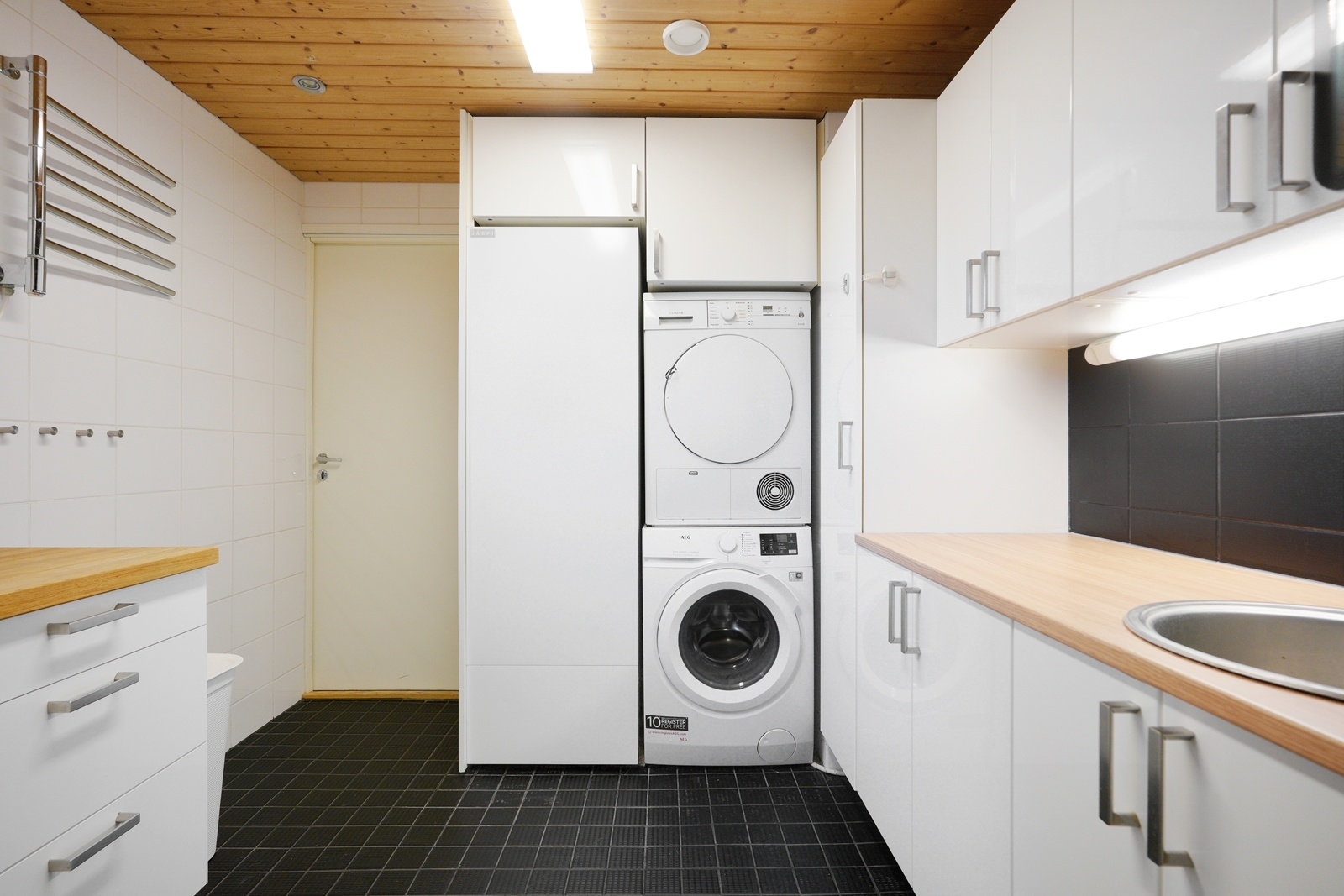 | Muut huoneet ja tilat | Eteisaulassa kaapistot samoin tuulikaapissa. Vaatehuone masterbedroomissa. |