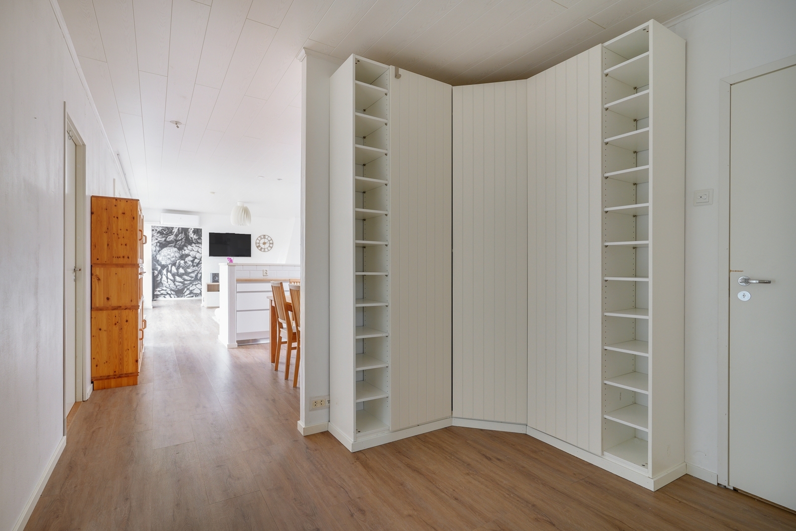 | Tilojen kuvaus | Eteisaulassa kaapistot samoin tuulikaapissa. Vaatehuone masterbedroomissa. |