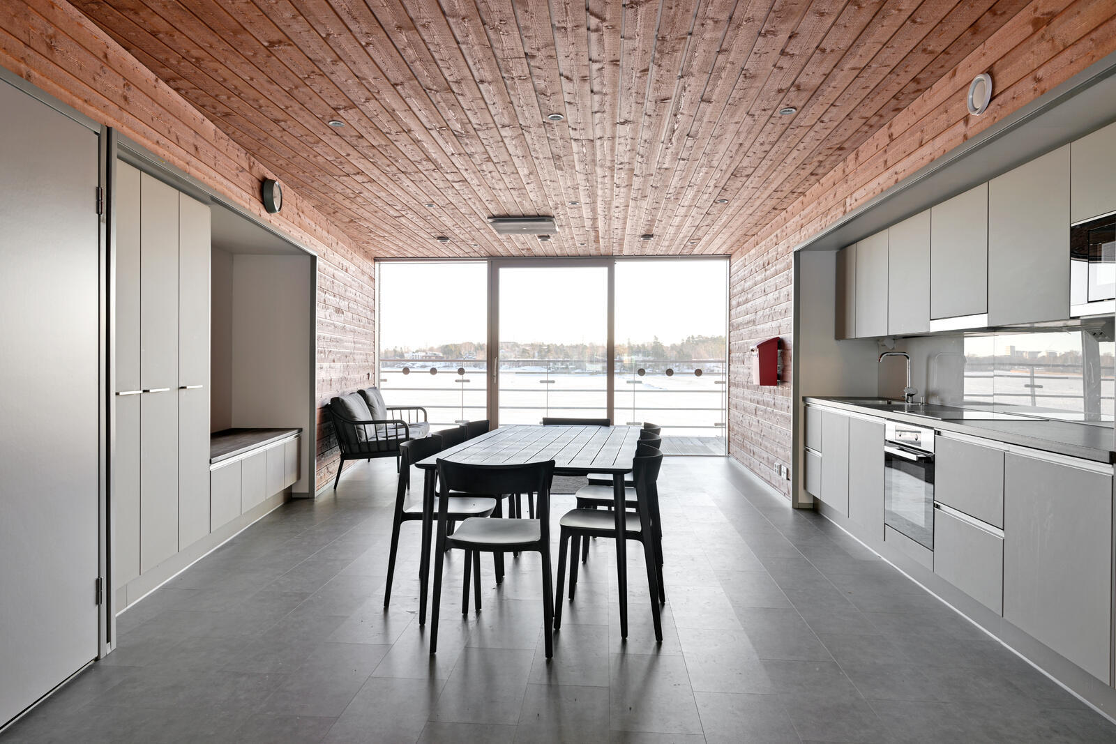 Yhteiskäytössä oleva rantasauna käsittää kaksi erillistä saunaosastoa wc-tiloineen, oleskelu-/kerhotilan ja terassin. Muut yhteiskäytössä olevat tilat pesula, kuntosali, kierrätyshuone, vierashuone, kanoottivarasto. Uimalaituri. Kaikkien Portus yhtiöiden yhteiskäytössä olevia tiloja hallinnoi hoitokunta. |