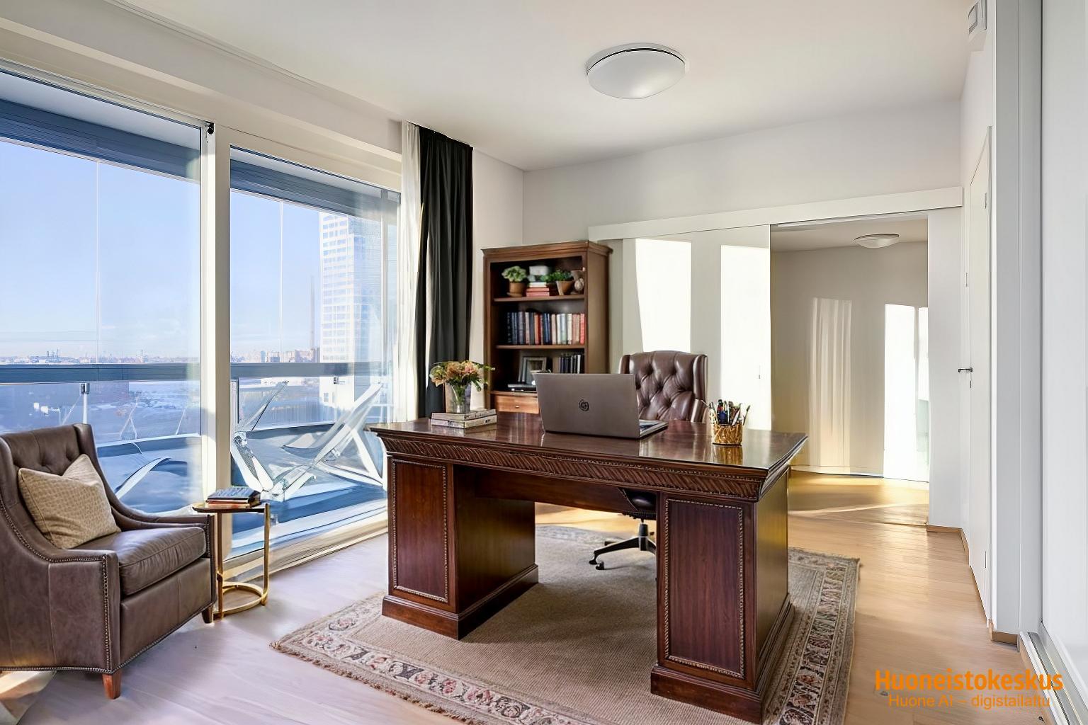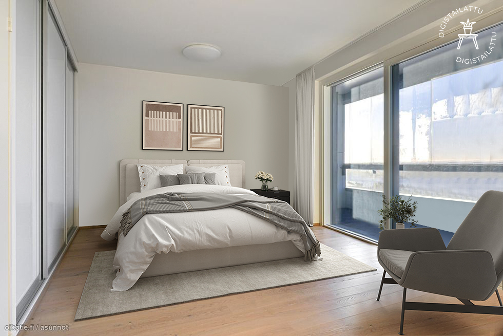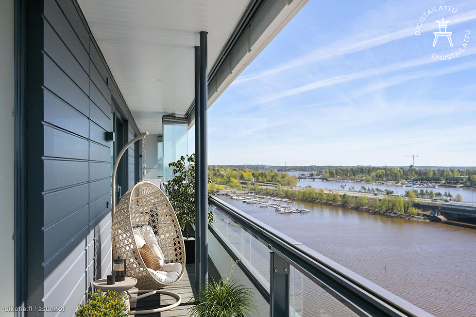 Tämän asunnon tilat taipuvat moneen ja arkielämää helpottavat hyvät saniteettitilat , vaatehuone ja mainio kodinhoitohuone. Kaupunkinäkymät avautuvat 11. kerroksesta. Tietenkin yhtiö on esteetön ja liikkuminen onnistuu hissillä varastoihin ja autohalliin. Asunnon terassiparvekkeelle on kulku leveiden liukuovien kautta sekä olohuoneesta että nykyisestä päämakuuhuoneesta. Kaikkea on; keittiössä integroidut Mielen kodinkoneet, vaatehuone, saunaosasto, kodinhoitohuone, erillinen wc, lasitettu parveketerassi, lattiaviilennys. Asunnon väljyys ja ilmavuus yhdistettynä toimivuuteen ja luonnollisenkauniisiin materiaaleihin tekevät lähtemättömän vaikutuksen. Mahdollisuus ostaa myös autohallipaikkaa.