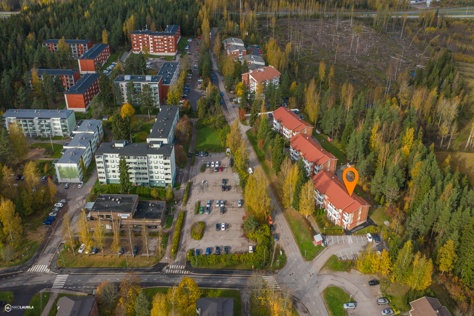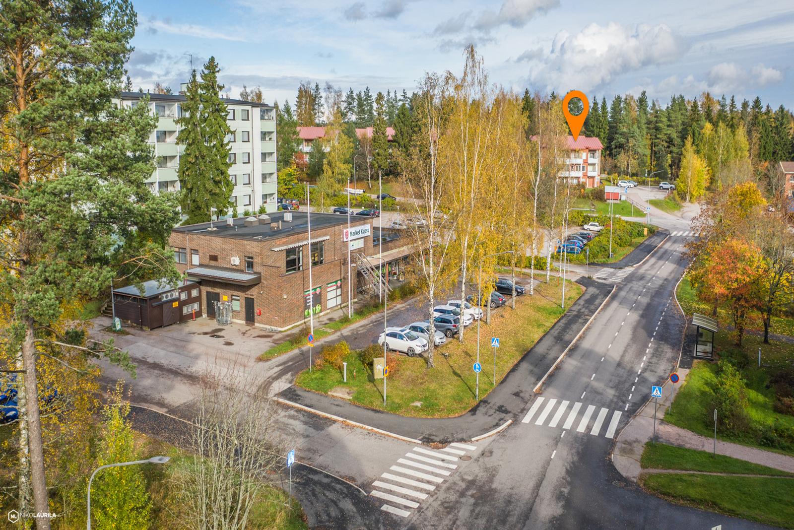 Asunnosta avautuvat esteettömät näkymät kaupan, kuntosalin ja pizzerian suuntaan. Kaikki arjen palvelut ovat siis aivan vieressä. Porvoon keskustaan on noin 3 km ja linja-autoyhteydet Helsinkiin ja Porvooseen kulkevat kätevästi lähistöltä.