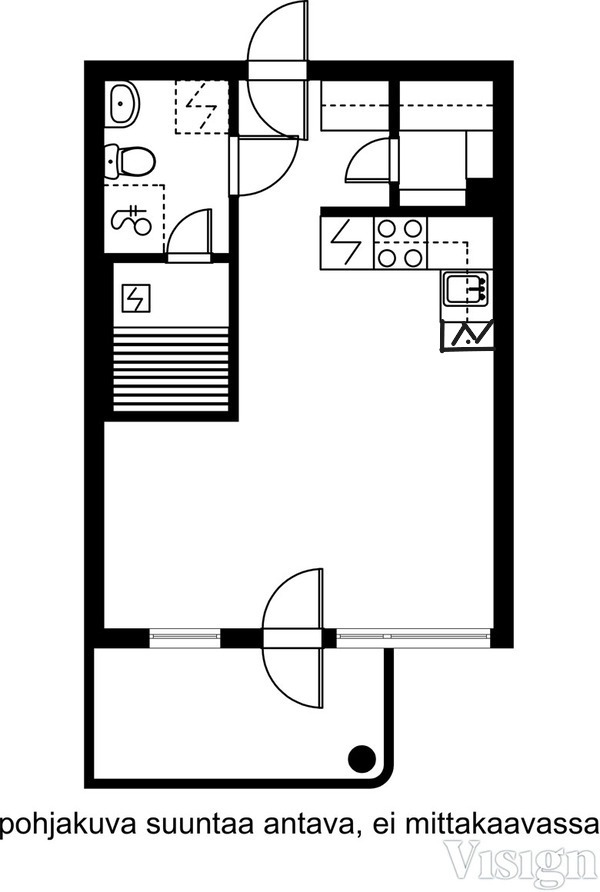 Yksiö omalla saunalla ja lasitetulla parvekkeella. Palvelut ja yhteydet lähellä.
