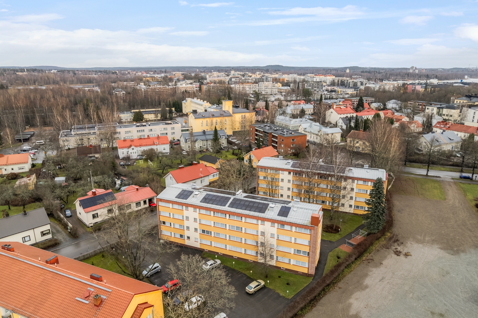 Tervetuloa tutustumaan viihtyisään kotiin, joka sijaitsee yhdellä Hämeenlinnan halutuimmista asuinalueista Kaurialassa. Eino Leinon katu on rauhallinen kokoojakatu, jolta kantakaupungin palvelut ovat vain lyhyen kävelymatkan päässä. Myös lähikauppa löytyy lähes nurkan takaa – arki sujuu helposti ja mukavasti.