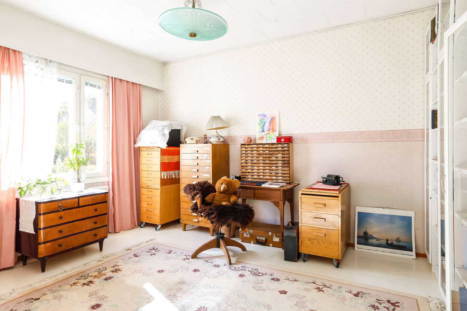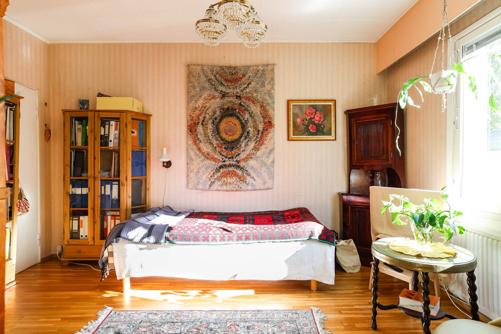 | Olohuoneen kuvaus | Seinät (tapetti), lattiat (parketti) |