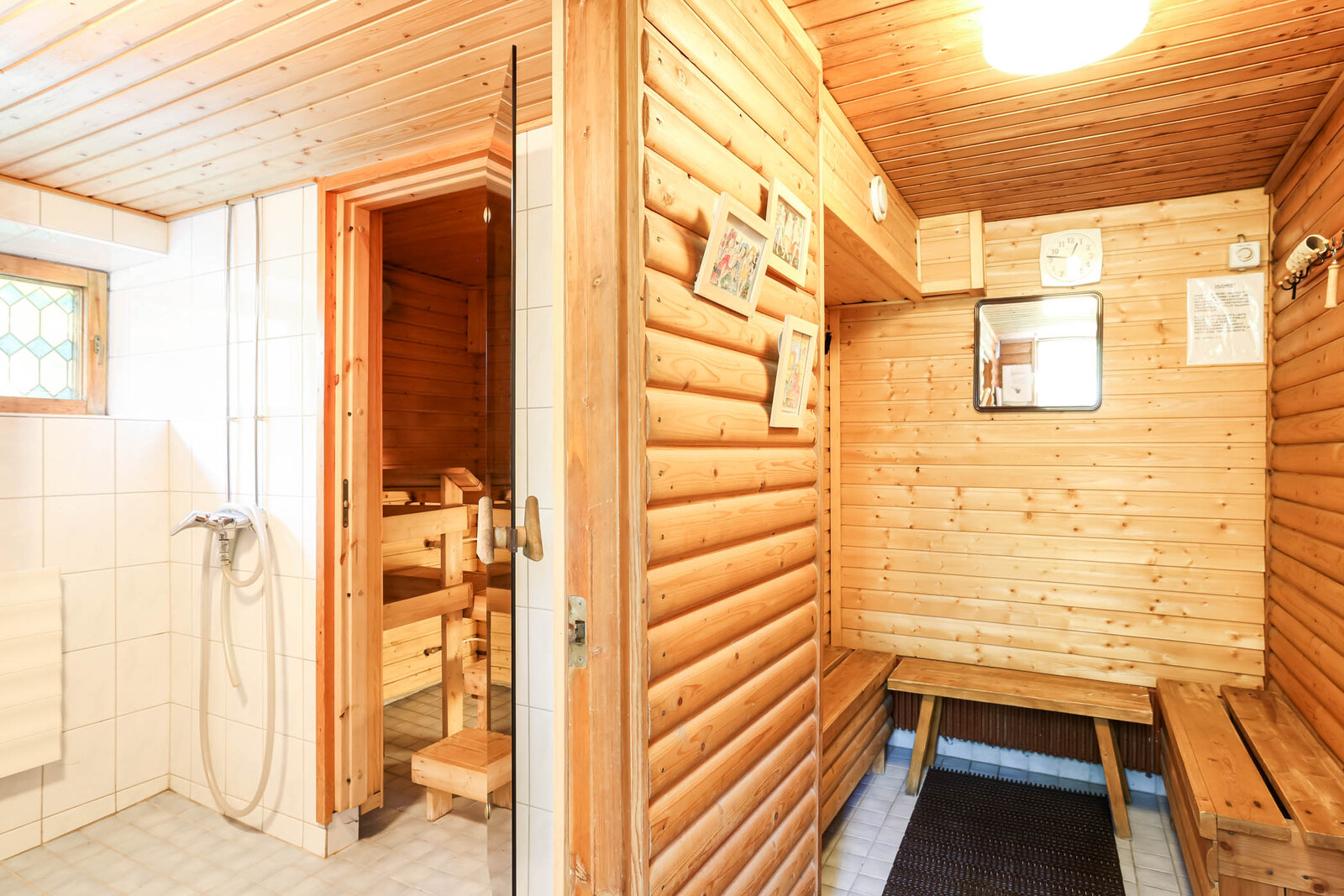 | Saunan kuvaus | Seinät (puu), lattiat (laatta), Sähkökiuas, 2005 sauna remontoitu, 2024 kiuas uusittu. |