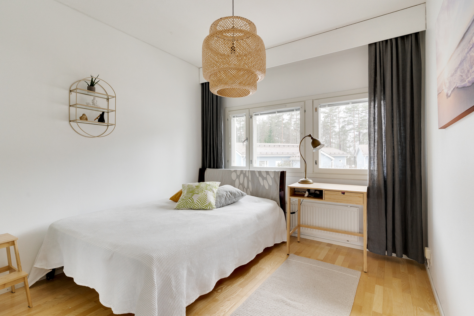 | Makuuhuoneen kuvaus | Lukumäärä: 3, seinät (lasikuitutapetti), lattiat (parketti) |