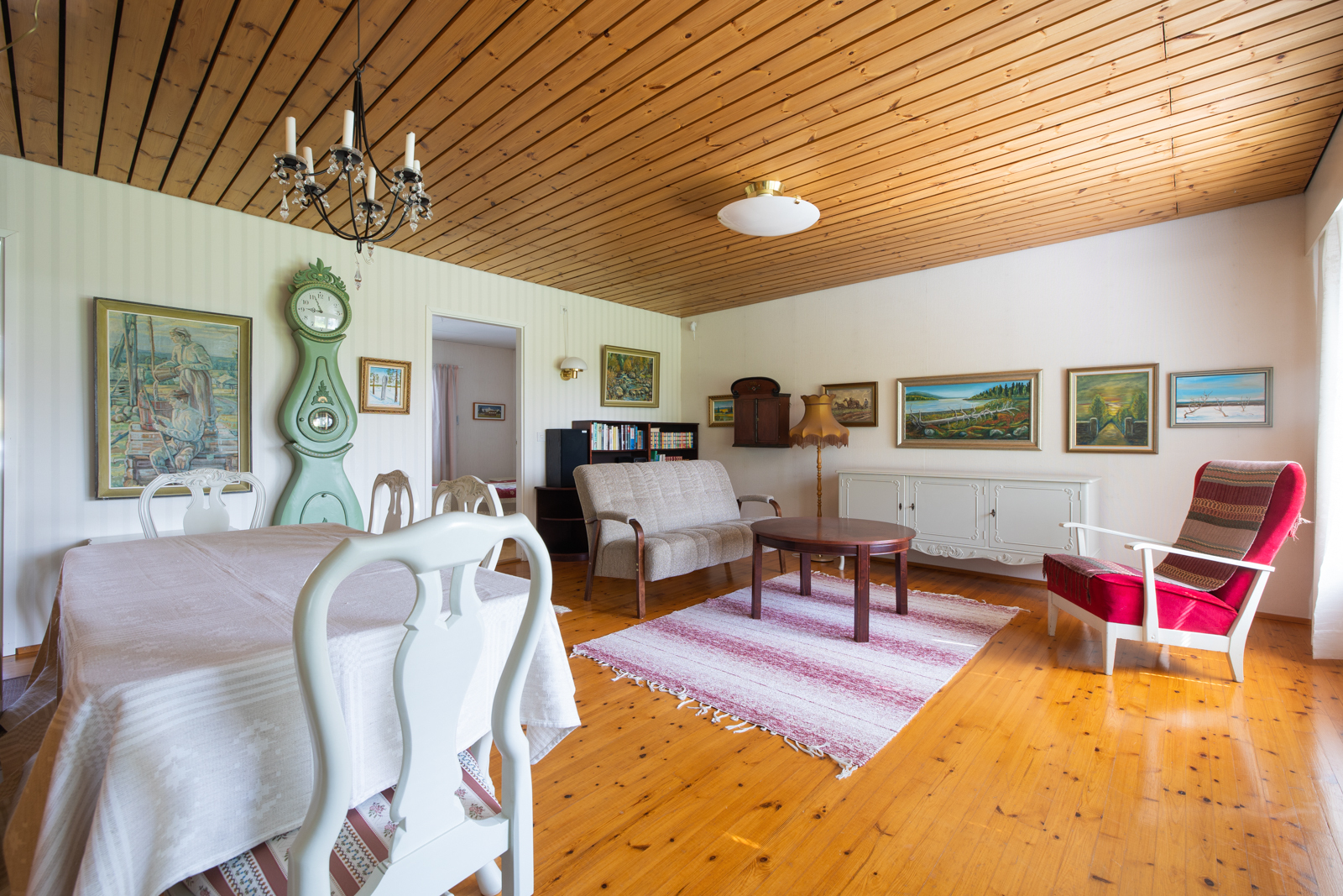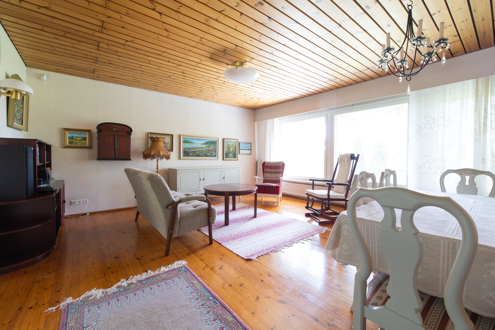 Keittiö ja olohuone puu, makuuhuoneet maalattu,