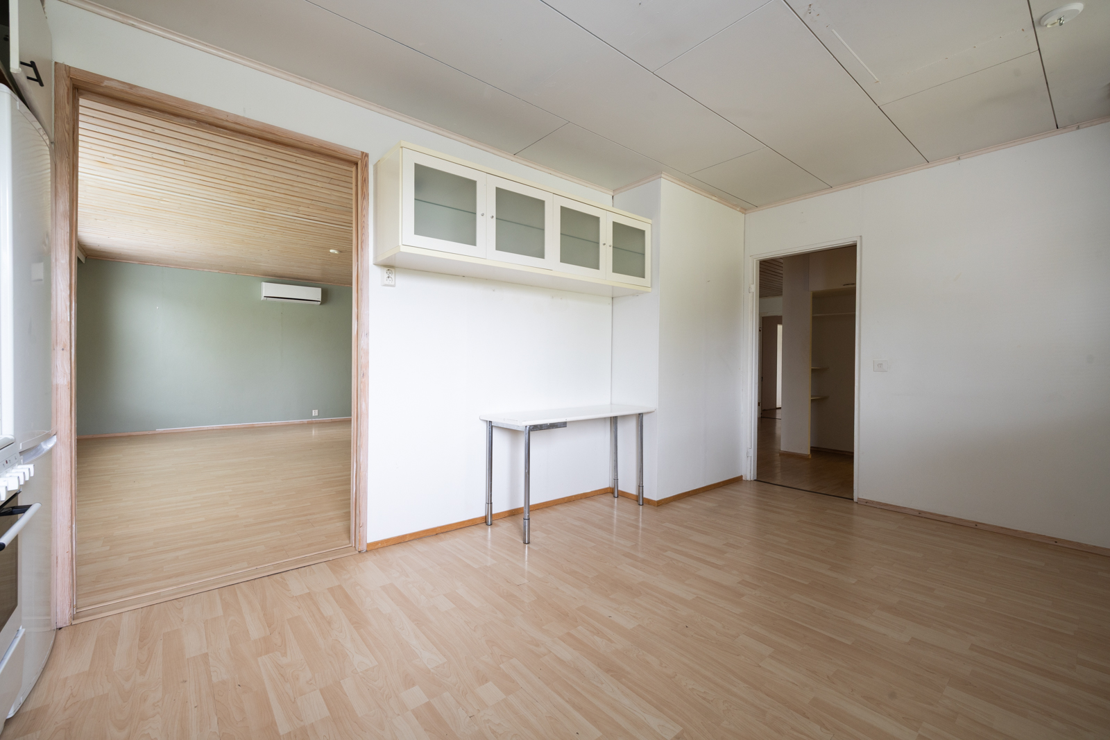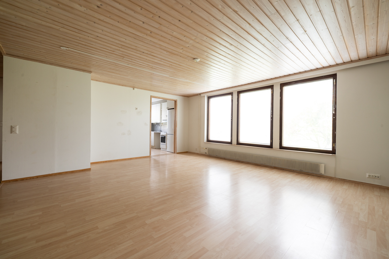 | Olohuoneen kuvaus | Seinät (maali), lattiat (laminaatti), 2 olohuonetta. Toinen olohuone reilun kokoinen n. 30m2. Isommassa n. 30m2 olohuoneessa on ilmalämpöpumppu, joka on n. 2 vuotta sitten uusittu. |
