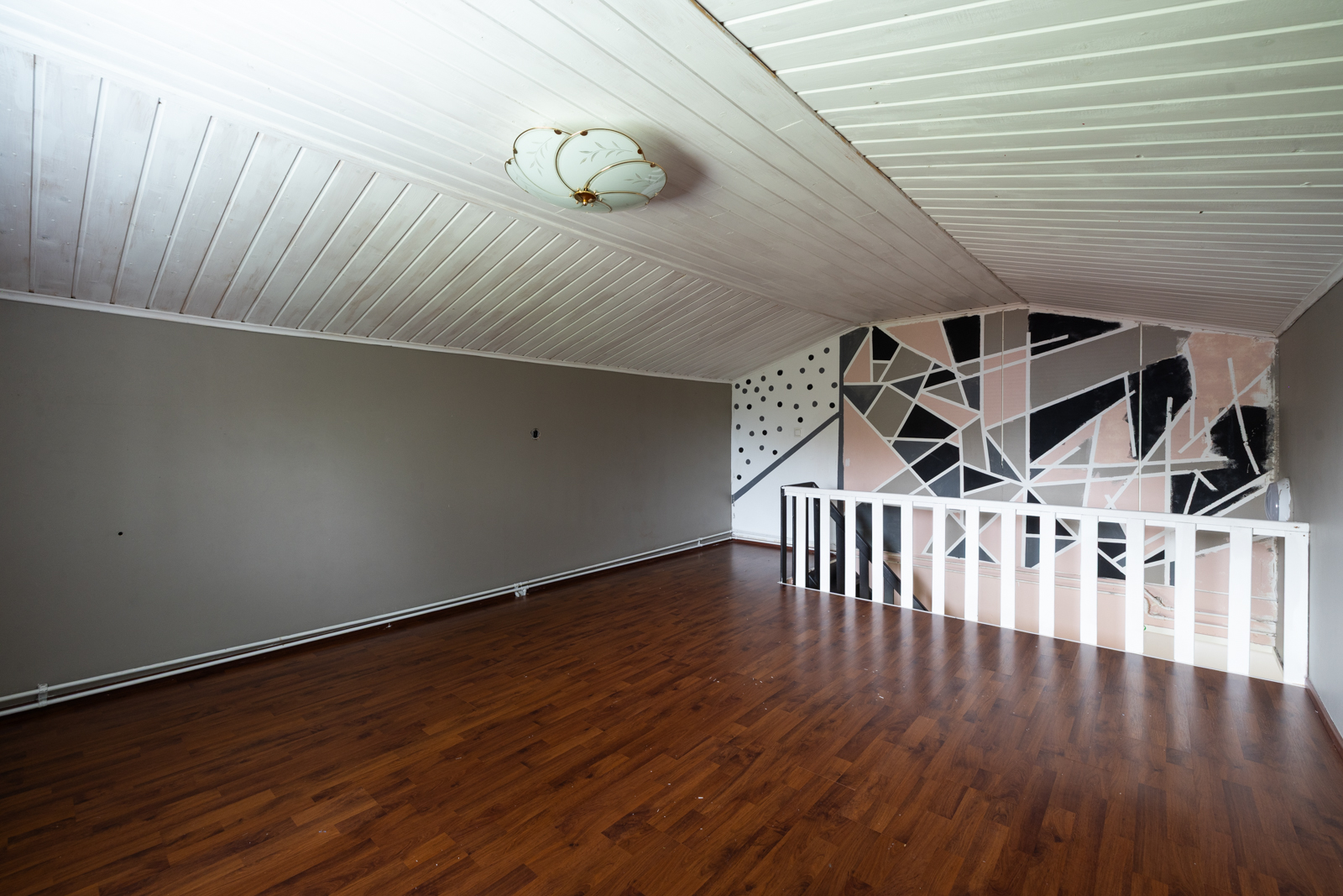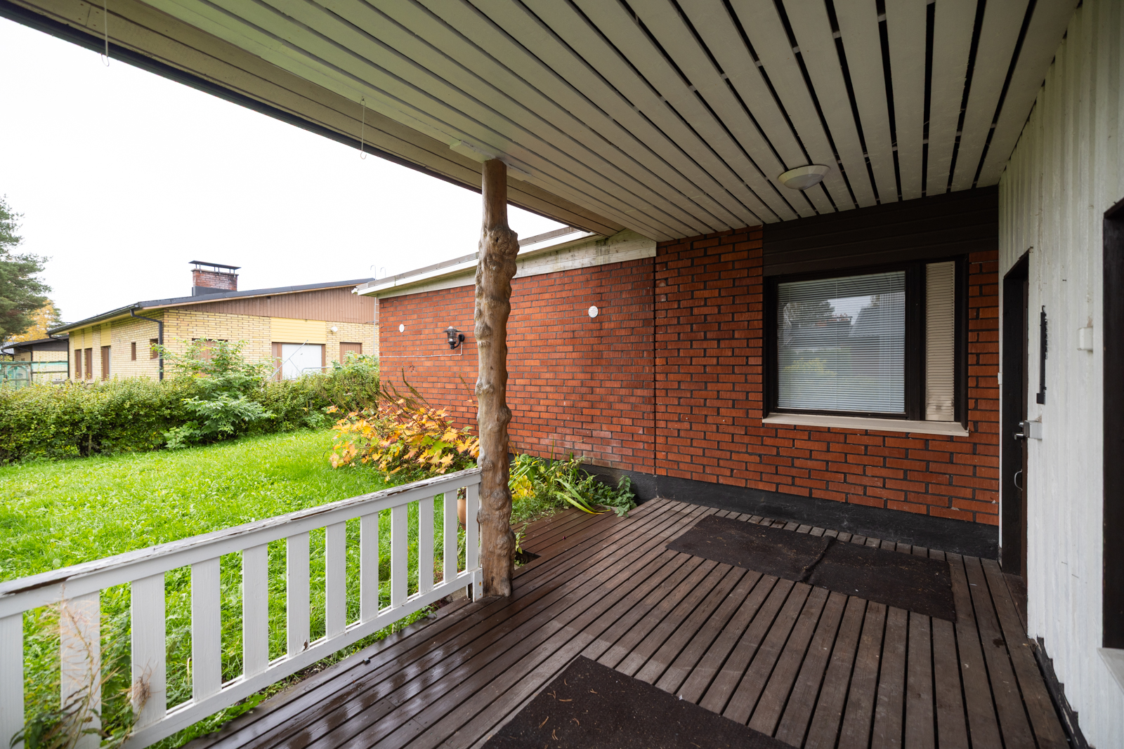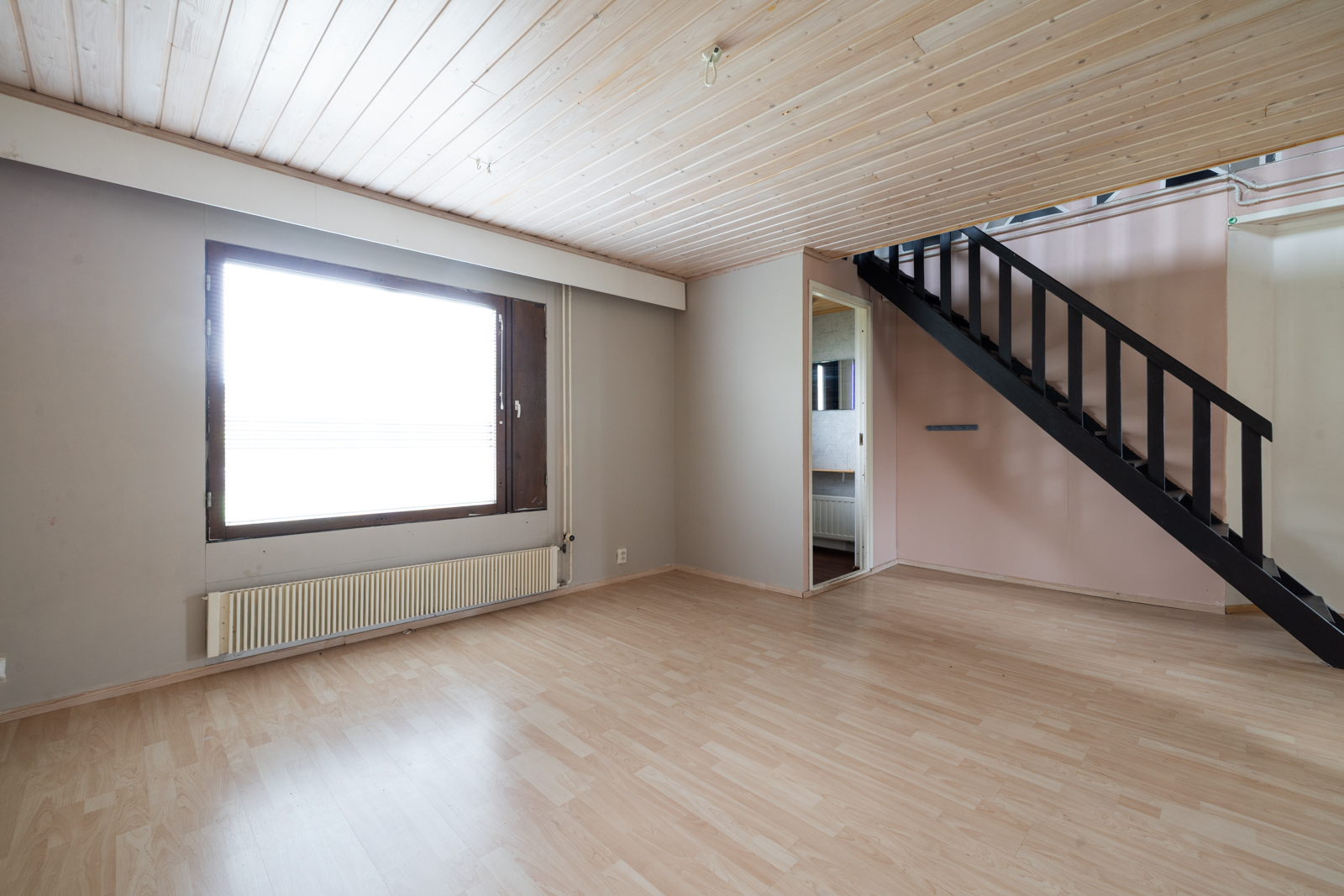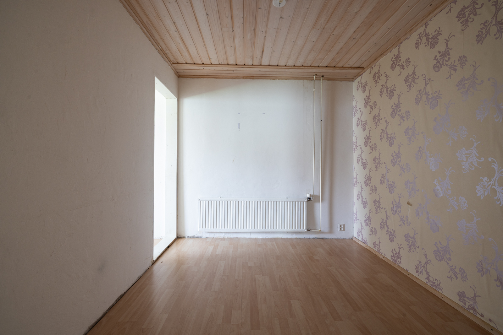 | Kattomateriaalin kuvaus | Tuulikaapin, Eteisen, työhuoneen ja parven katto valkolakattua puupaneelia. |