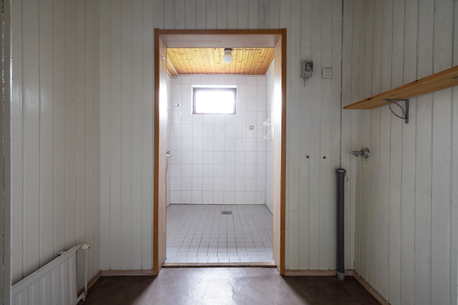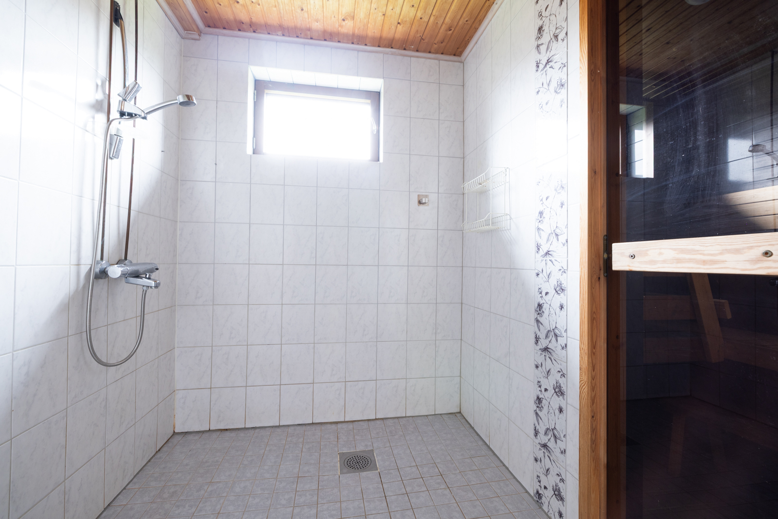 | Saunan kuvaus | Seinät (puu), lattiat (laatta), Sähkökiuas, Saunassa tummennettu lasiovi, tuuletusikkuna |