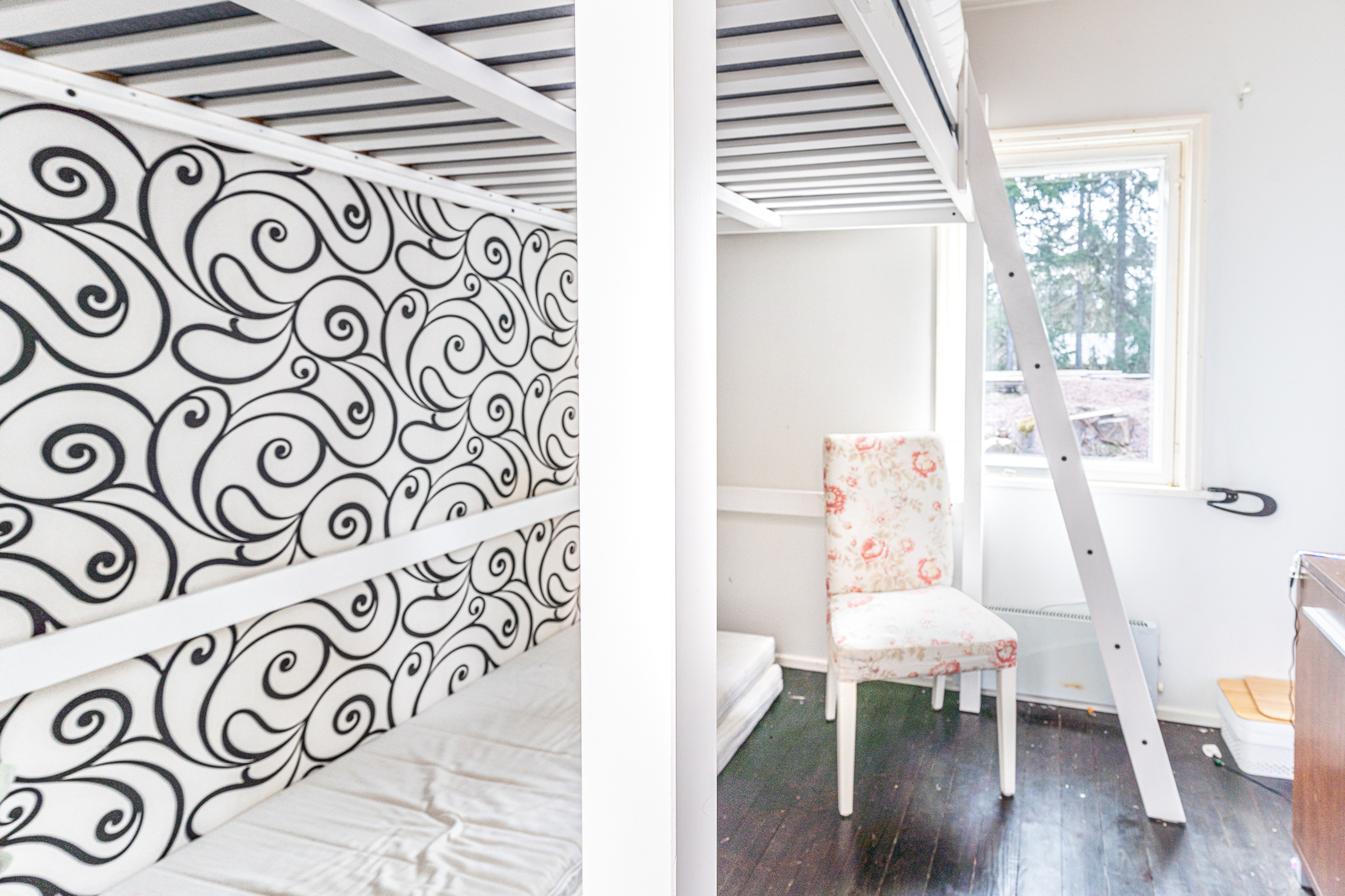 Makuuhuoneen kuvaus Lukumäärä: 2, seinät (maali), lattiat (lauta)