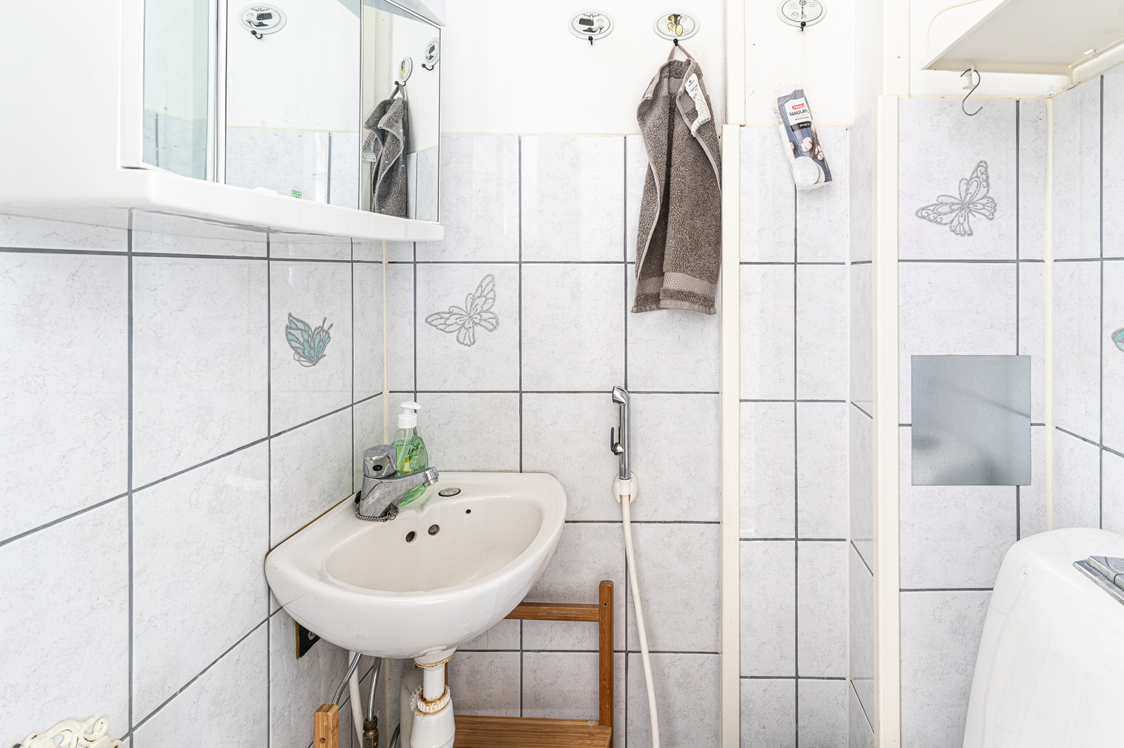 Kylpyhuoneen kuvaus Suihku, seinät (kaakeli), lattiat (laatta)