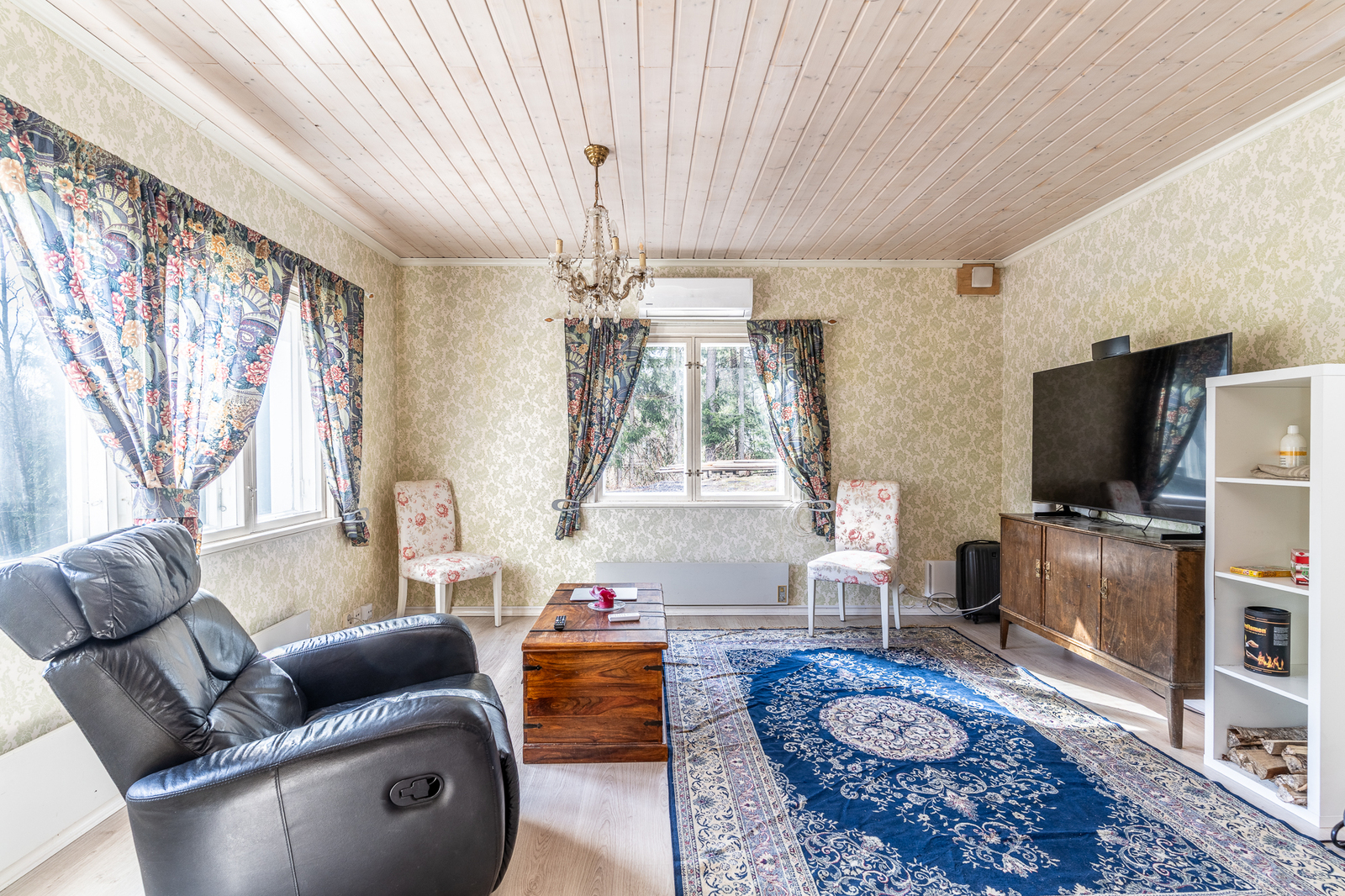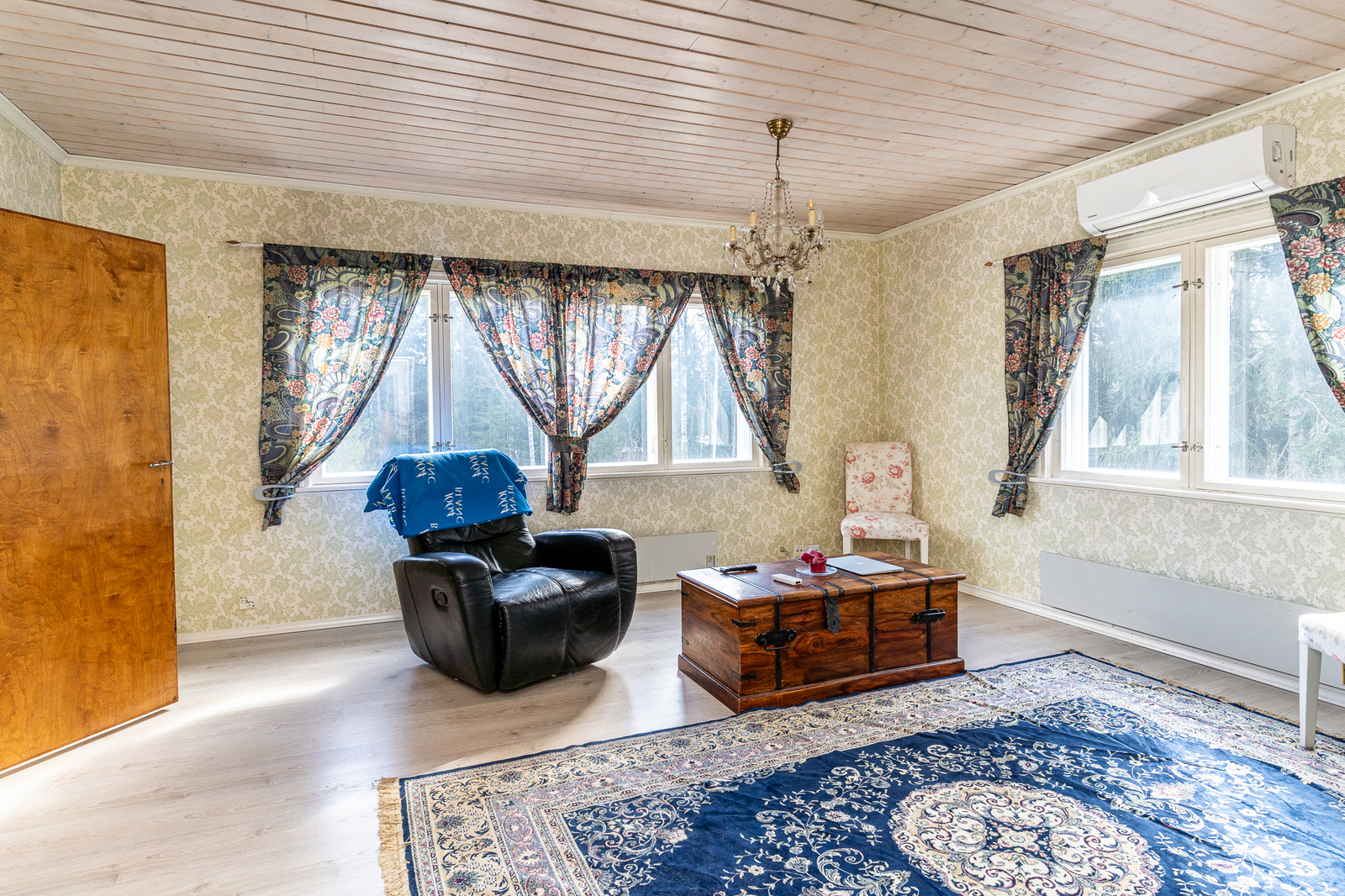 Olohuoneen kuvaus Seinät (maali), lattiat (laminaatti)