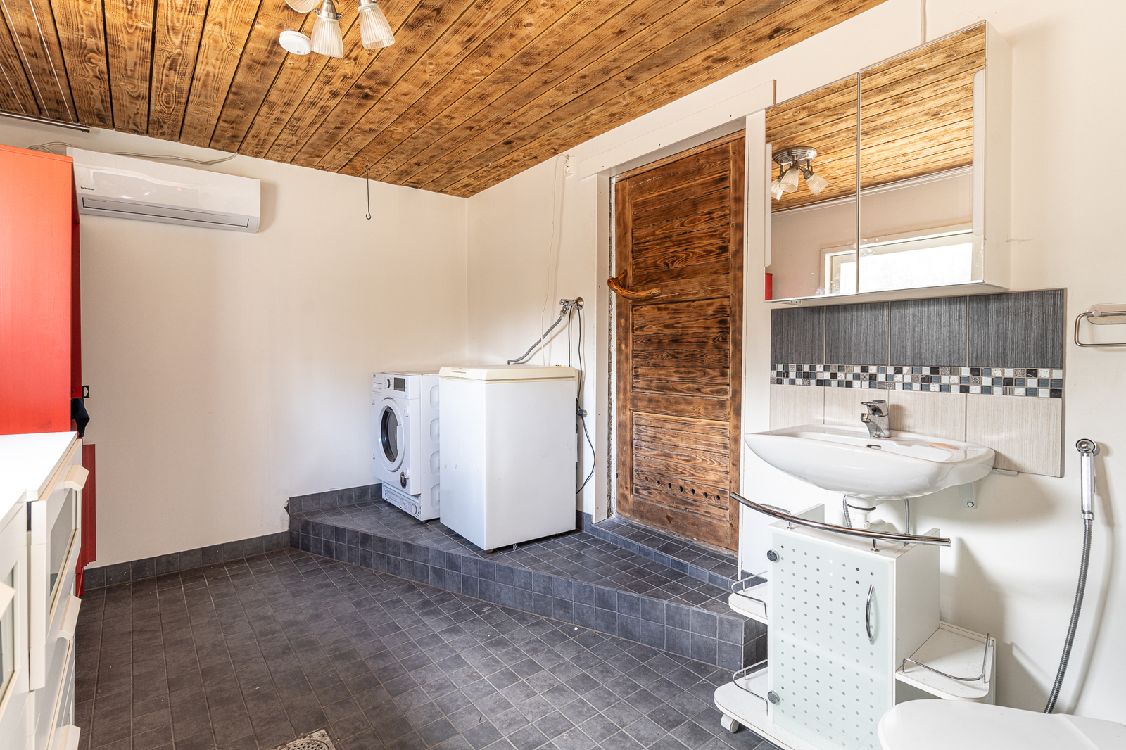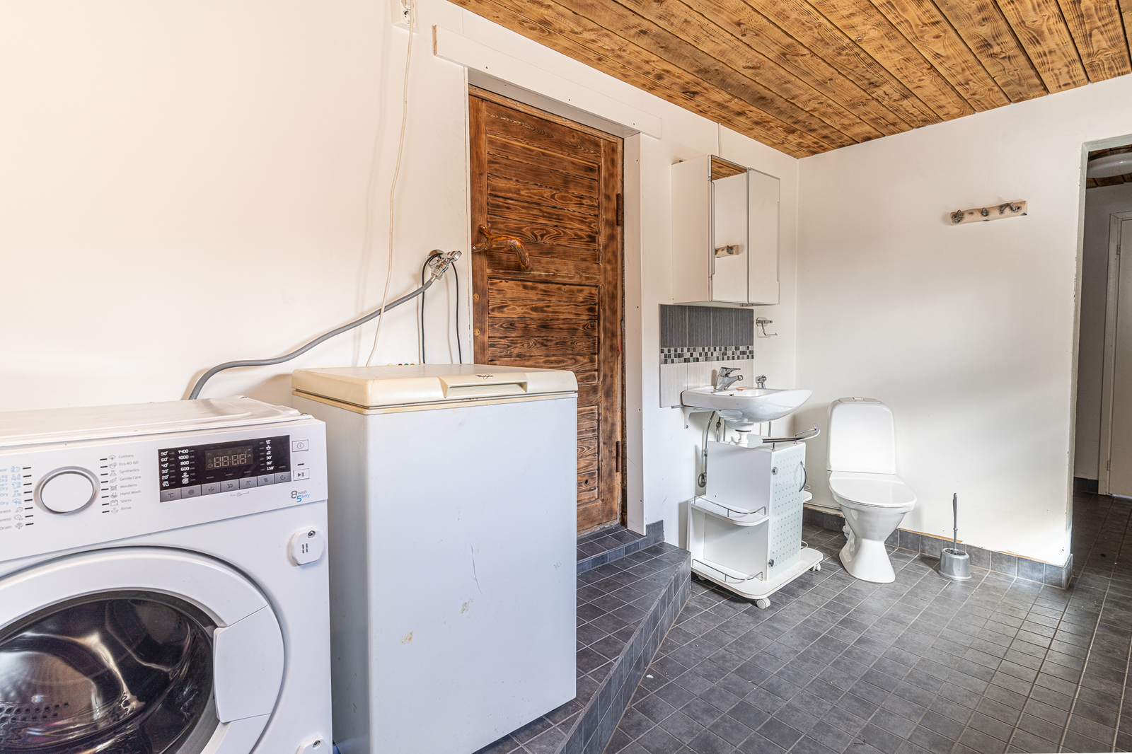 Kodinhoitohuoneen kuvaus Pesukoneliitäntä, lattiat (laatta), seinät (maali)