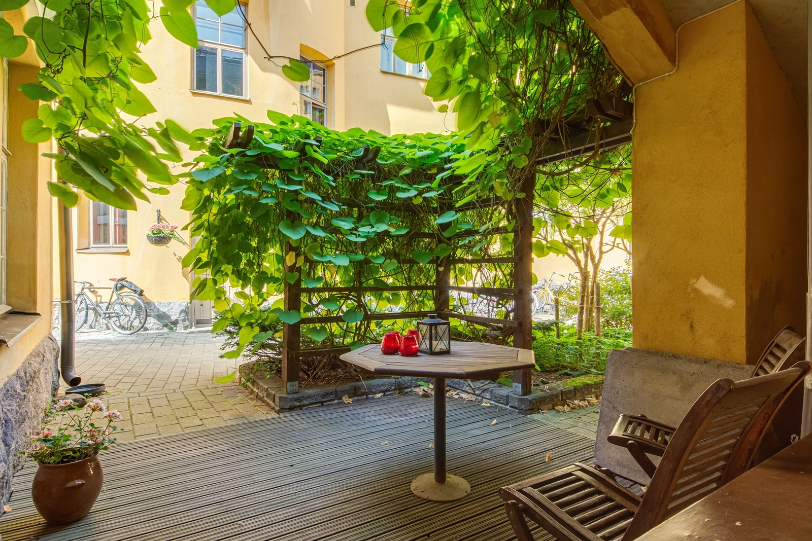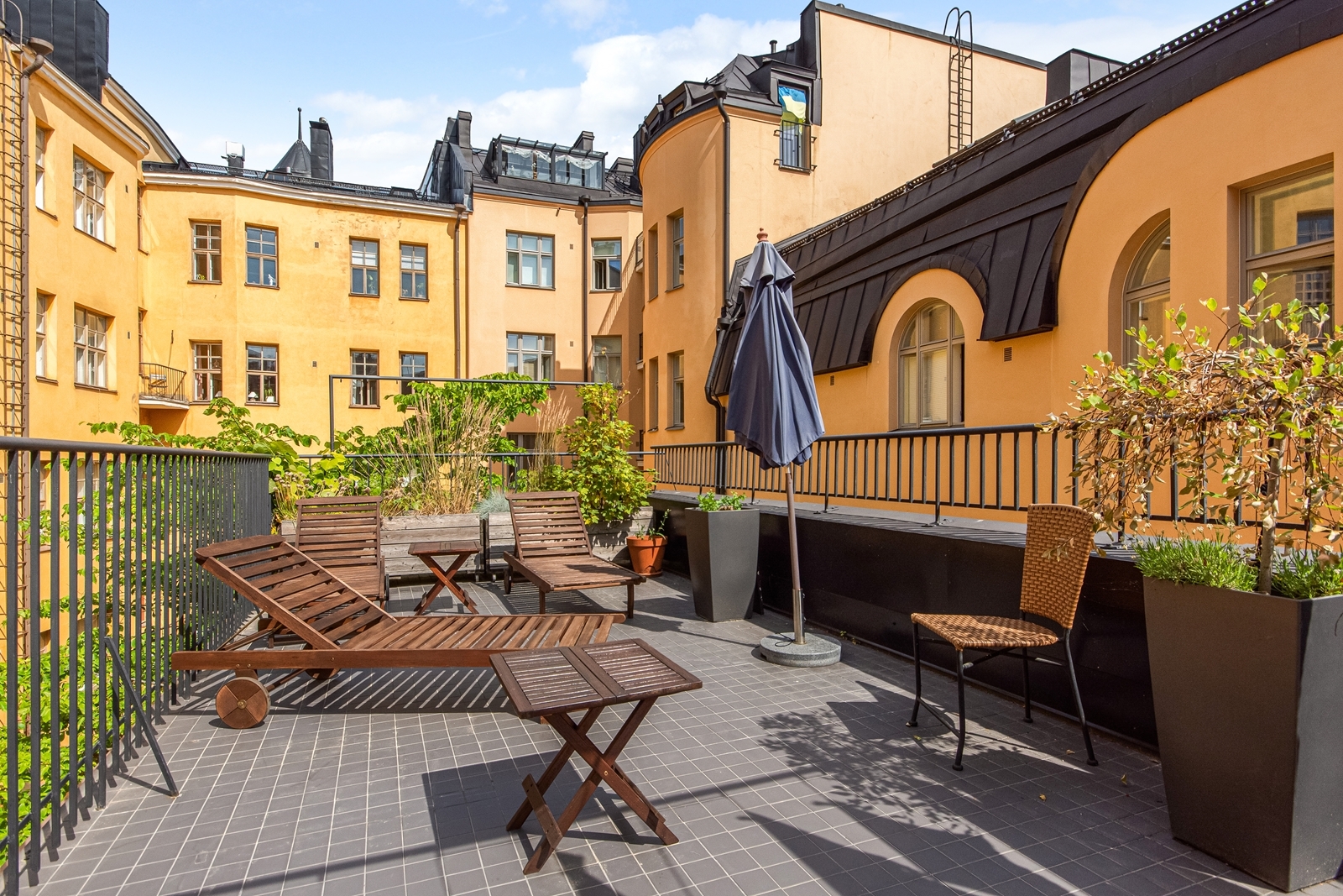 | Taloyhtiöön kuuluu | Pihaterassi ja kaasugrilli, kattoterassi ja kaupunkiviljelymahdollisuus, taloyhtiön pesukone. Taloyhtiössä on kaasu. Vintillä pyykinkuivaustila. |