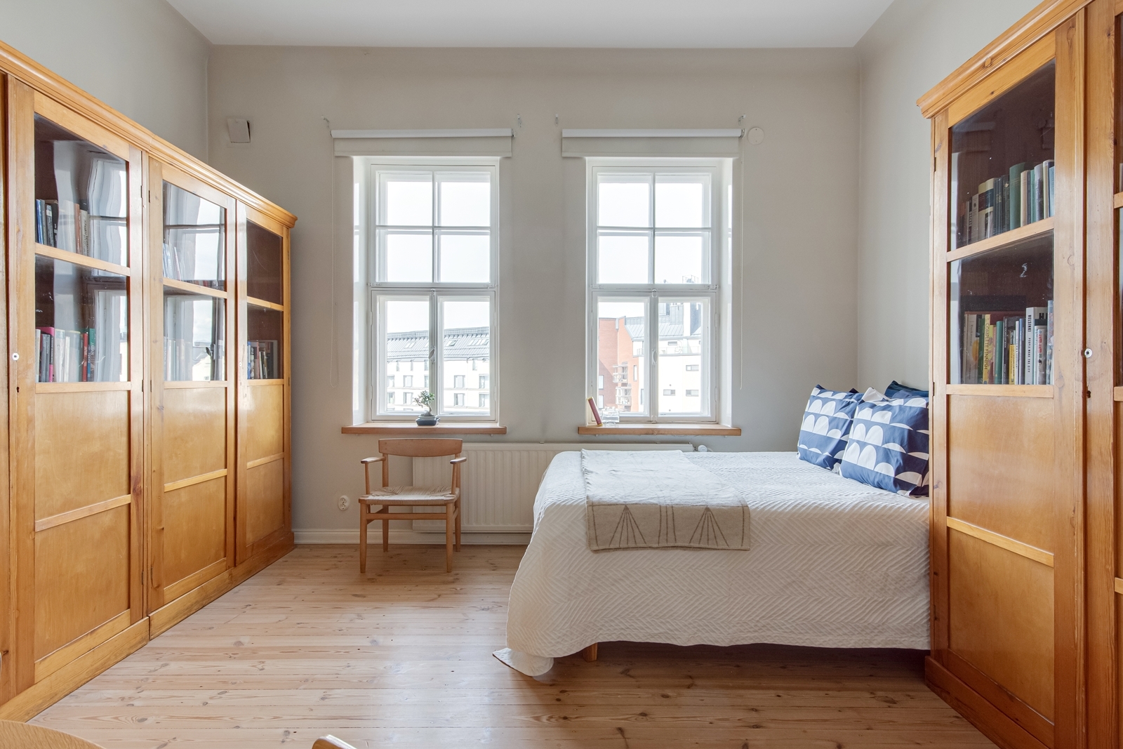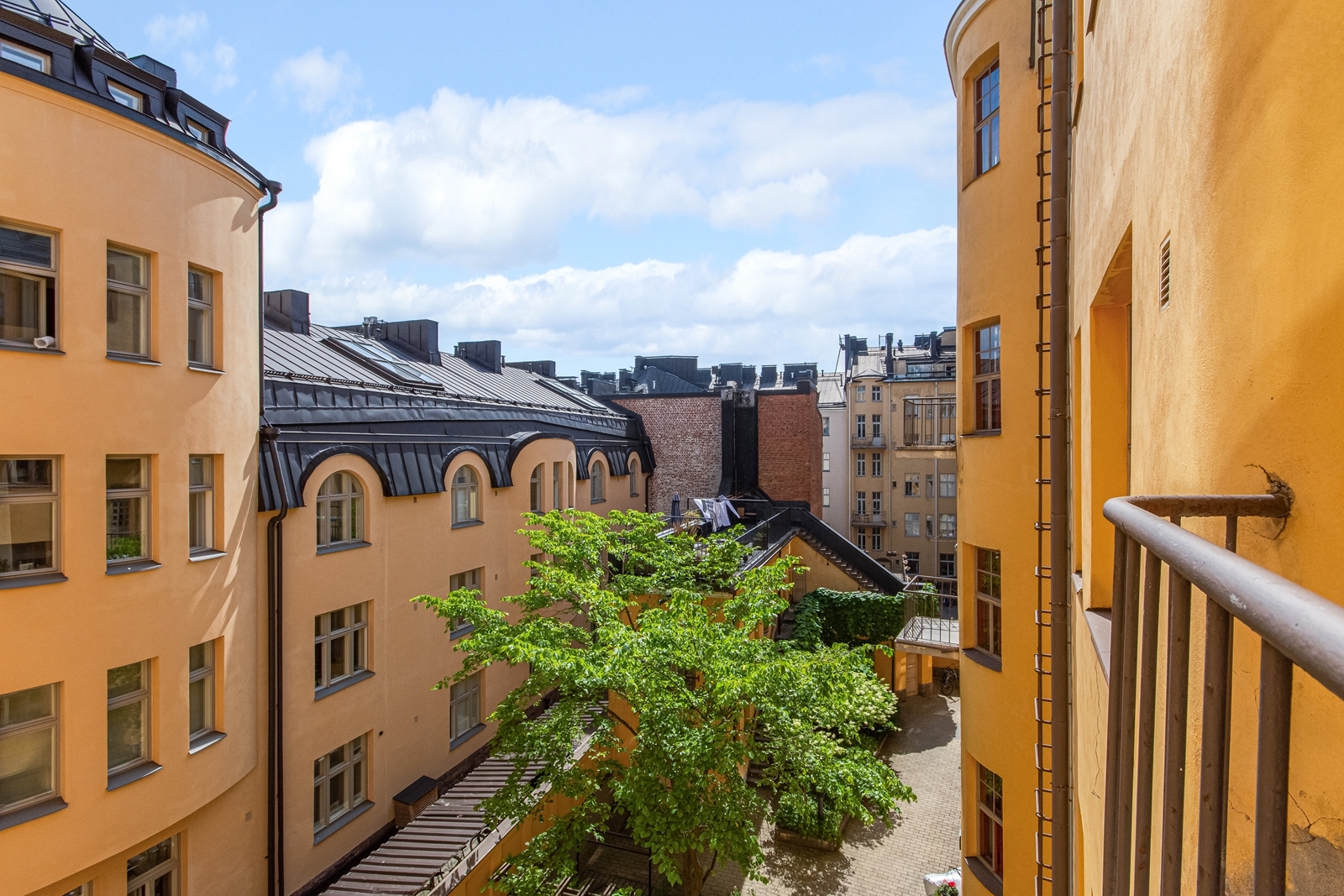 Tervetuloa asumaan tyylikkääseen ja valoiseen ylimmän kerroksen huoneistoon vuonna 1906 rakennetussa arvokiinteistössä. Tässä läpitalon asunnossa on avarat kaupunkinäkymät useista ikkunoista, jotka tulvivat luonnonvaloa sisään.