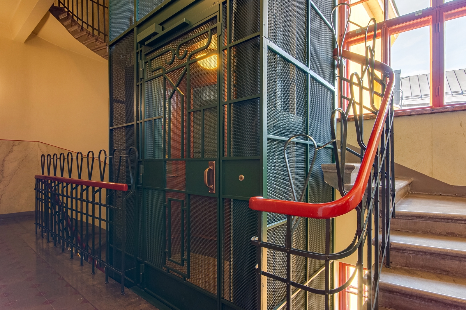 Tilava hissi (rakennettu 2017), esteetön kulku myös liikuntaesteisille