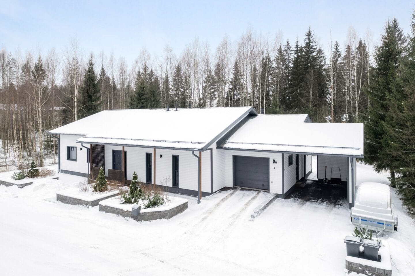 Asuinrakennuksen yhteydessä sijaitsee tilava lämmin autotalli ja varasto sekä autokatos. Katettu suojaisa terassi