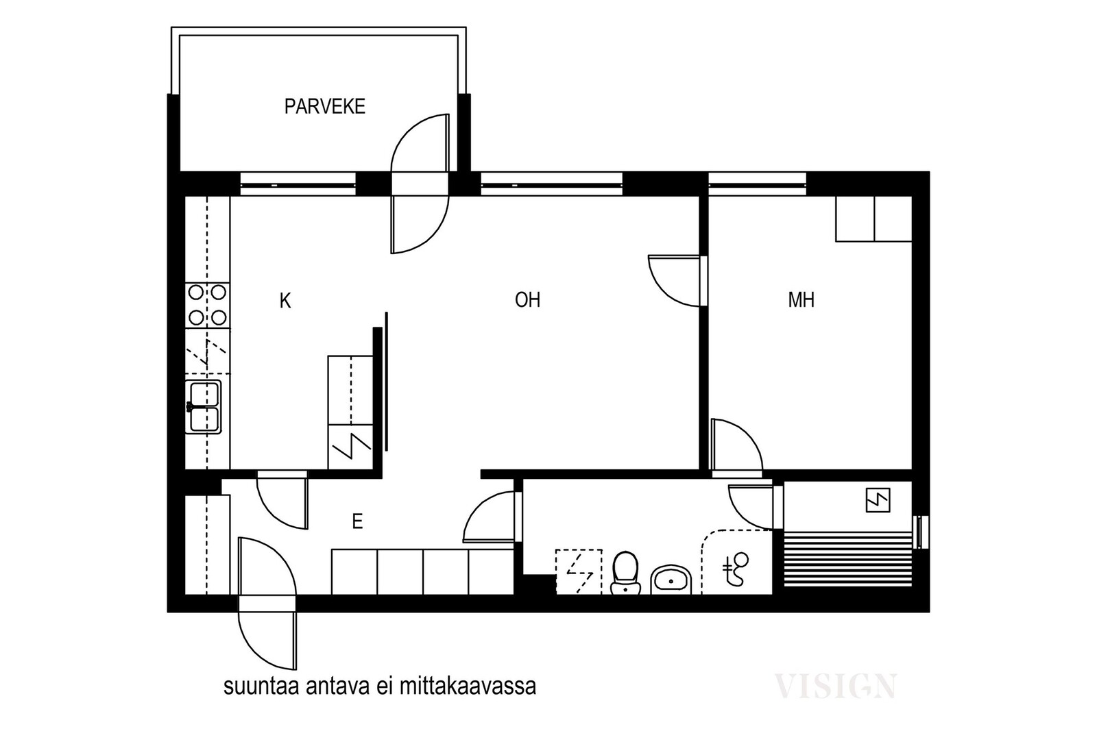 | Huoneistoselitelmä | 2 h, avokeittiö, kph/s, lasitettu parveke (Yj. 2 h+k+s) |