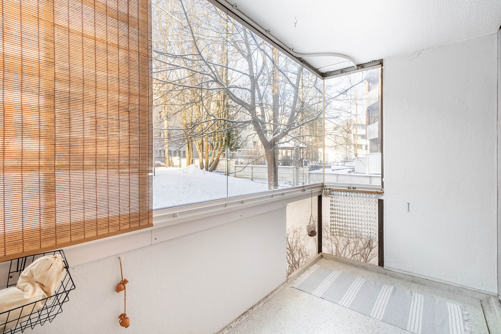 Käytännöllinen avokeittiö olohuone kokonaisuus, kylpyhuone ja ikkunallinen sauna sekä lasitettu länsiparveke. Parvekkeelle saat luotua kauniin ja viihtyisän huoneen sisustamalla sen vuodenaikojen teeman mukaan.