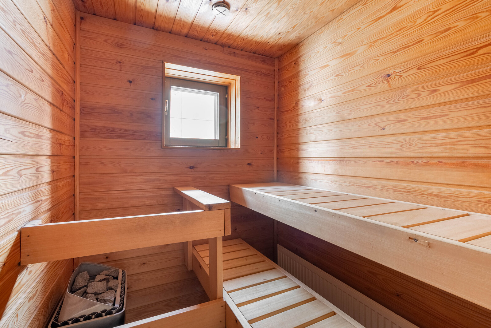 | Saunan kuvaus | Seinät (puu), lattiat (laatta), Sähkökiuas |