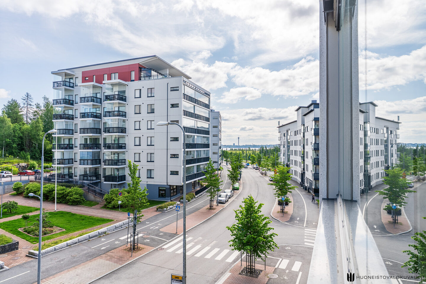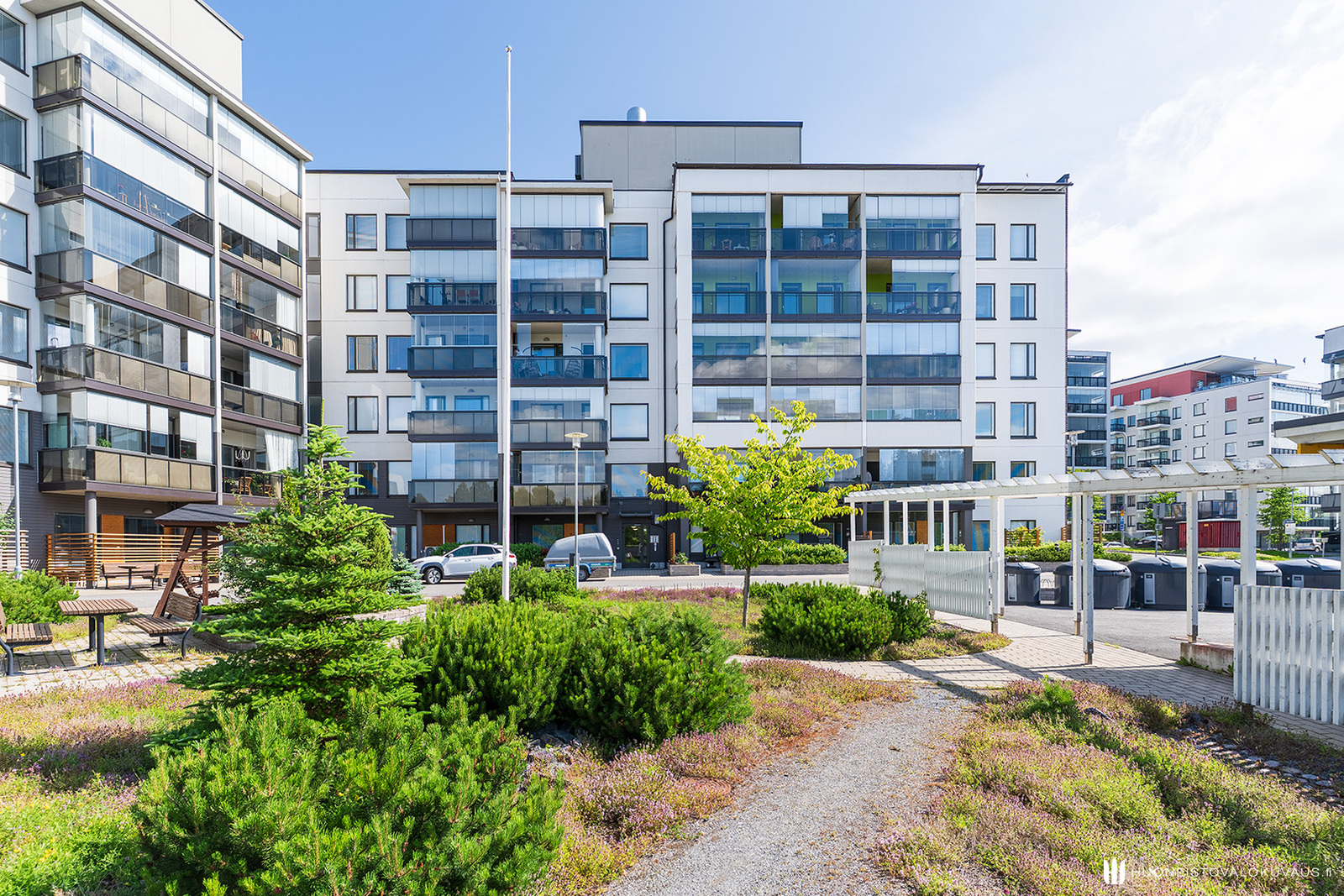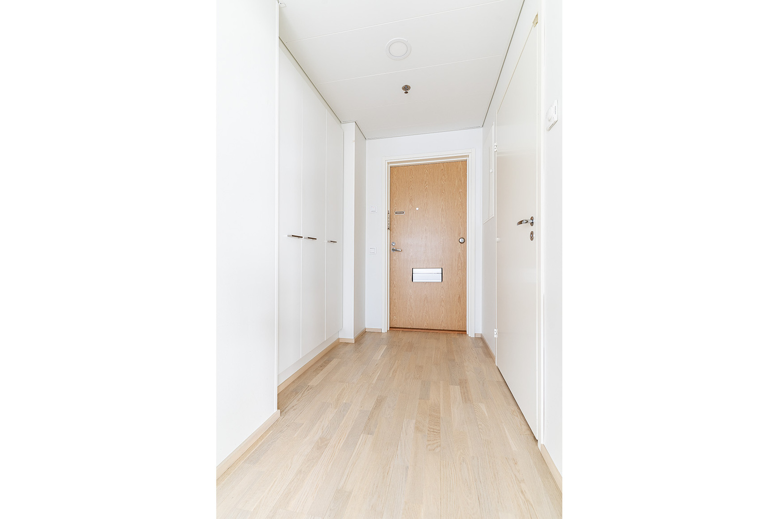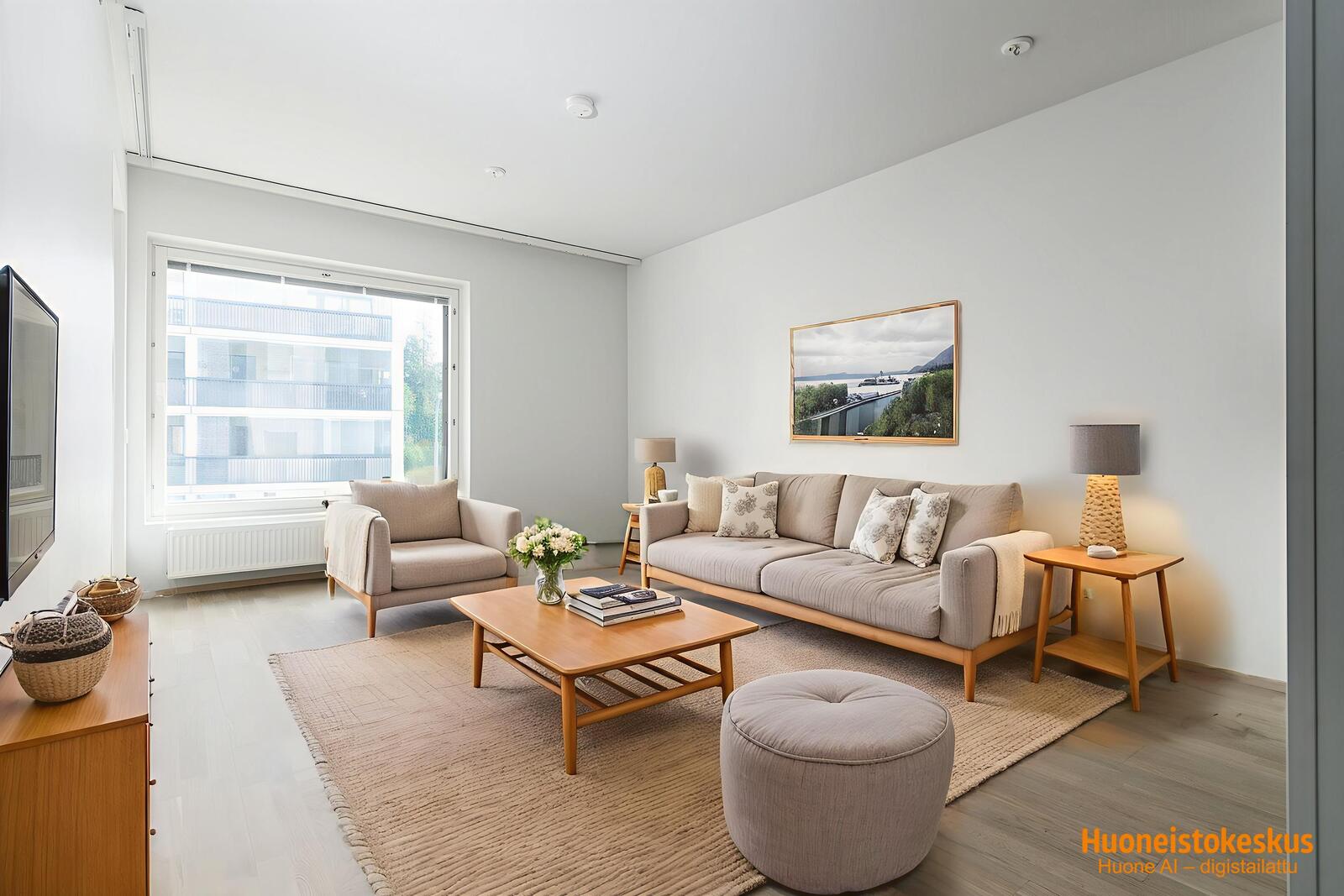 Asunnossa on tilava olohuone, josta pääsee lasitetulle parvekkeelle. Parveke suuntautuu koilliseen, tarjoten näkymät piha-alueille ja kadulle. Keittiö on varustettu laadukkailla kodinkoneilla, kuten astianpesukoneella ja keraamisella liedellä. Makuuhuoneessa on kauniit parkettilattiat, jotka jatkuvat myös olohuoneeseen ja keittiöön.