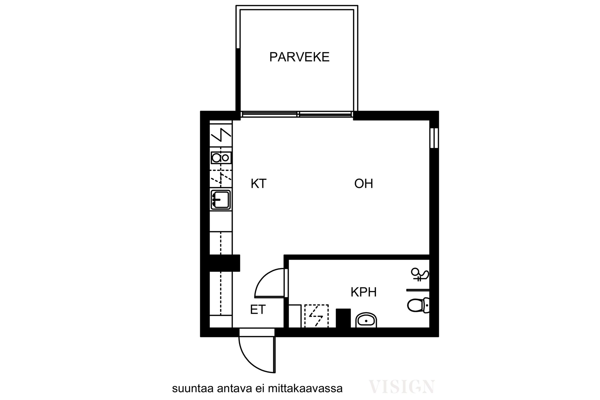 | Huoneistoselitelmä | 1 h, kt, kh, parveke (Yj. 1h+kt) |