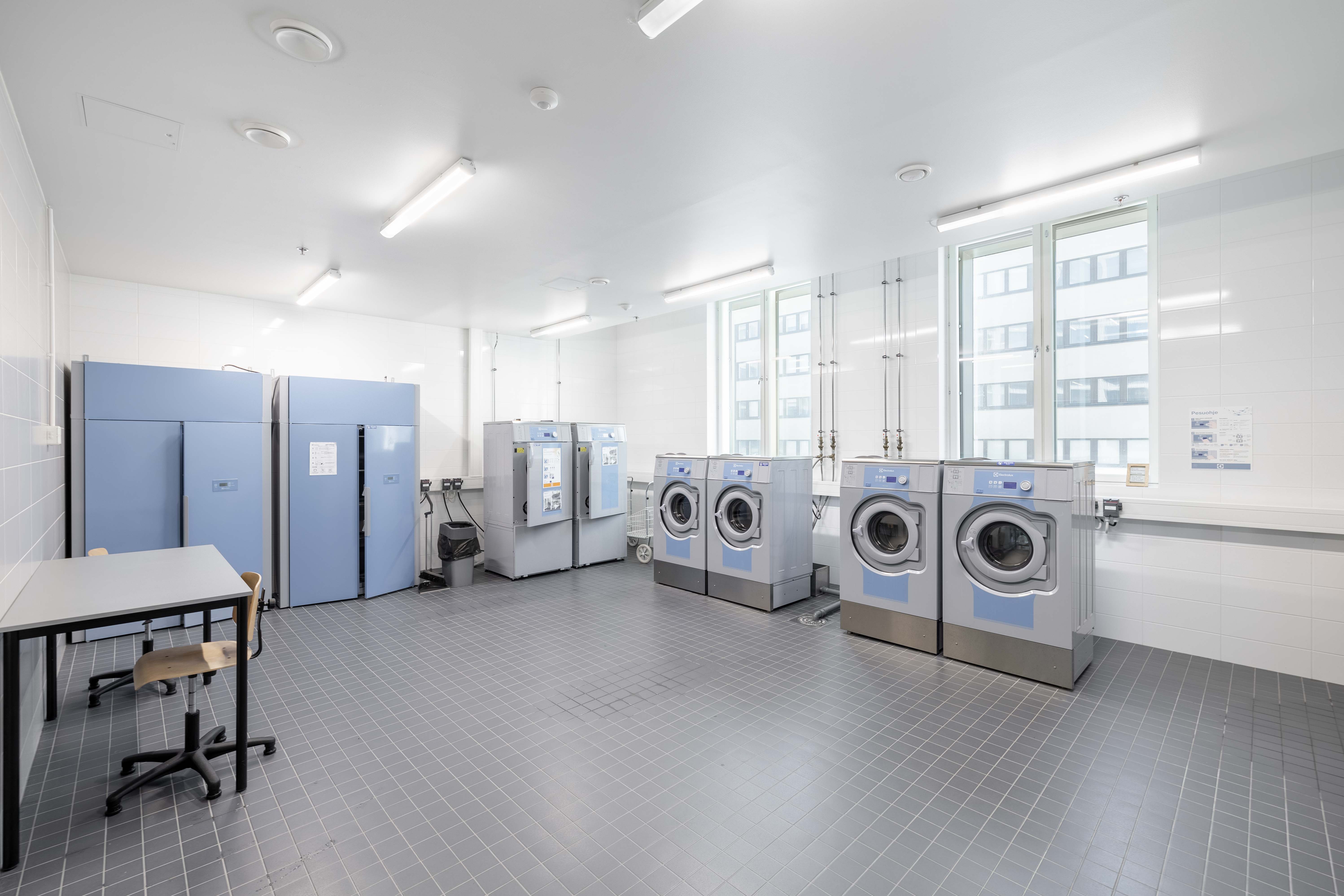 Asukkaiden käytössä on monipuoliset yhteistilat: sauna, pesutupa, kuntosali ja viihtyisä asukastila.