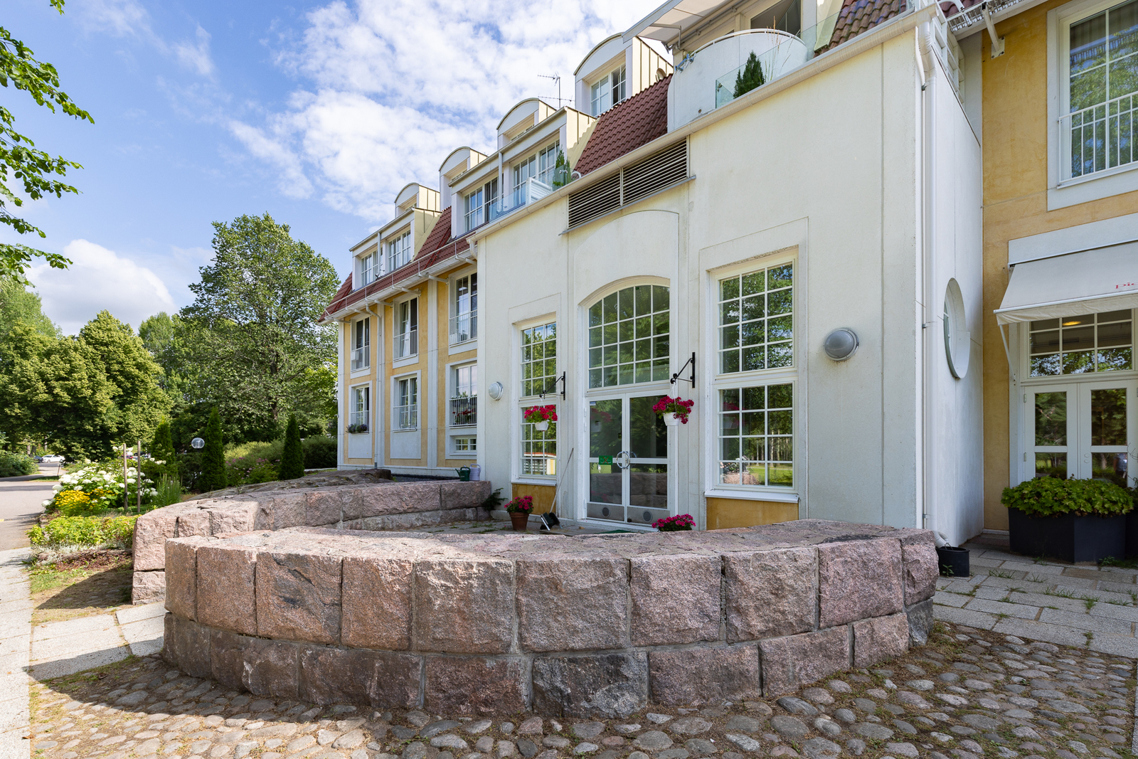 | Tulevat remontit | 2025 suunnittelu pihavalaistuksen parantaminen 2025 suunnittelu talon ja kivetysten pesu 2025 suunnittelu lämmitysverkoston perusparannus ja säätötyö 2025 suunnittelu kalkinpoistojärjestelmän asennus käyttöveteen 2025 suunnittelu yksittäisten parvekkeiden huoltomaalaus 2025 suunnittelu saunaosaston saneeraus ja pesutuvan päivitys 2026 suunnittelu käytävien lattiapintojen uusiminen (0 ja 1 kerrokset) sekä sisäänkäyntien huoltomaalaus 2026 suunnittelu parvekkeiden ja päädyn sisäänkäynnin kuntotutkimus 2027 suunnittelu salaojien kunnostuksen suunnittelu 2029 suunnittelu salaojien kunnostus 2029 suunnittelu perusmuurin patolevyn asennus puuttuville osille 2030 suunnittelu maalämpökoneiden uusinta |