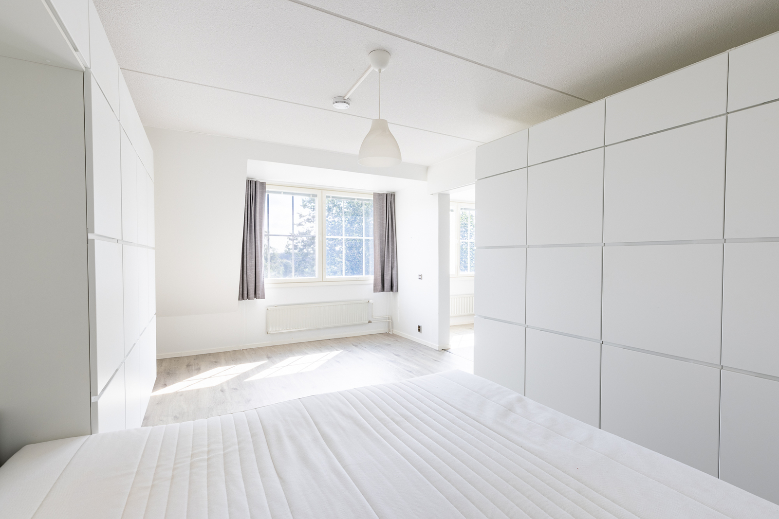 | Makuuhuoneen kuvaus | Lukumäärä: 1, seinät (maali), lattiat (laminaatti), Makuuhuoneessa paljon säilytystilaa kaapistoina |