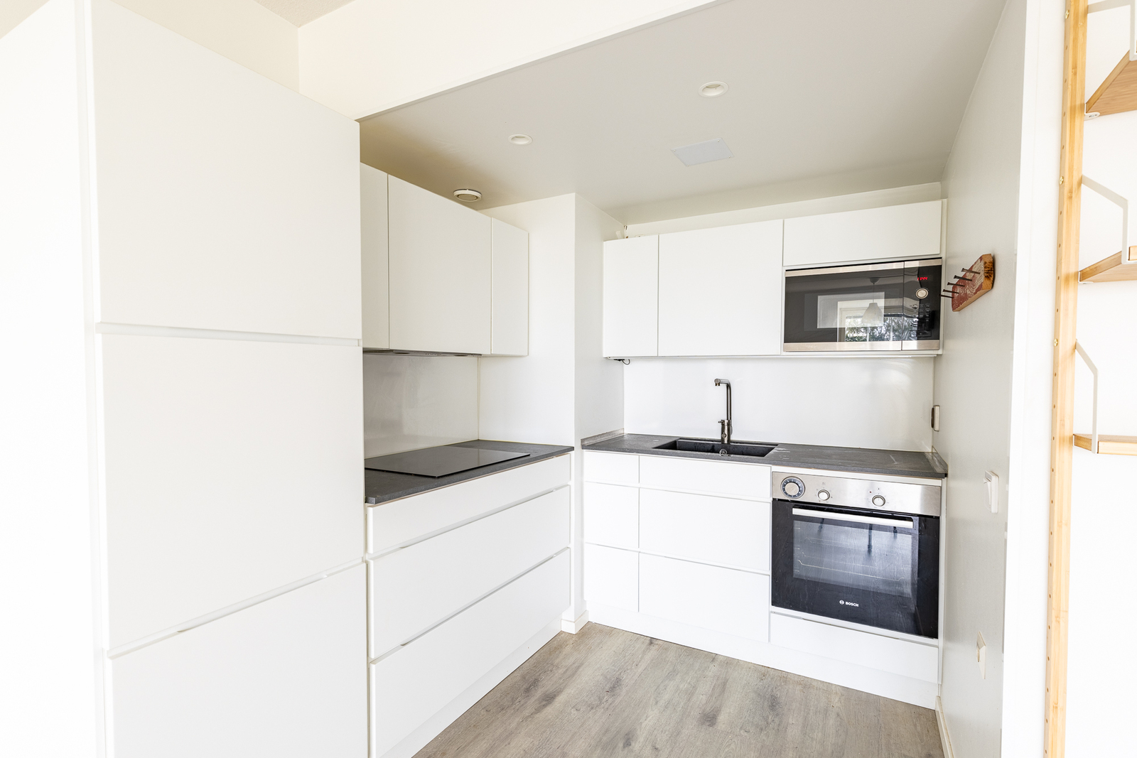 | Keittiön kuvaus | Liesi (Keraaminen liesi ja erillisuuni), työtasot (laminaatti), seinät (maali), lattiat (laminaatti), erillisuuni, jääkaappipakastin ja mikroaaltouuni |
