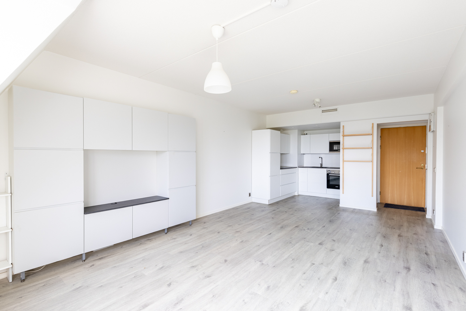 | Olohuoneen kuvaus | Seinät (maali), lattiat (laminaatti), Olohuoneessa kaapistot |