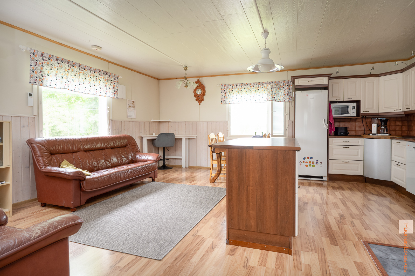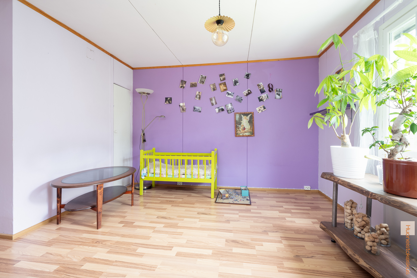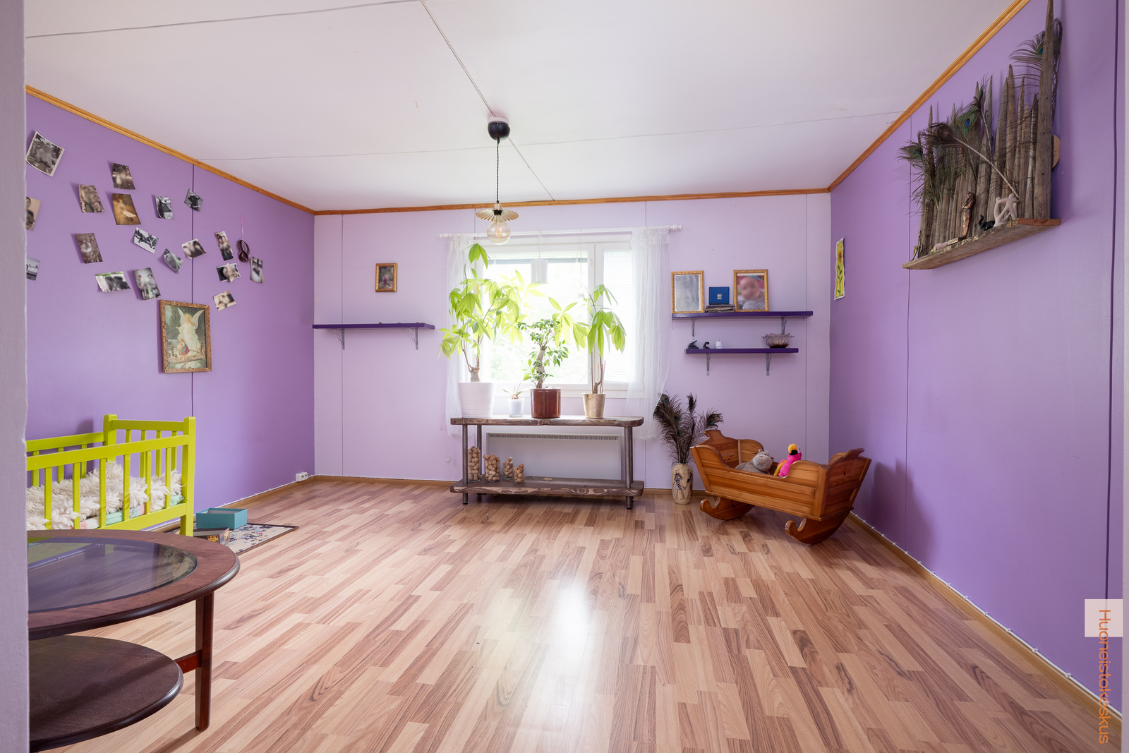 | Olohuoneen kuvaus | Seinät (puolipaneeli ja maali), lattiat (laminaatti) |
