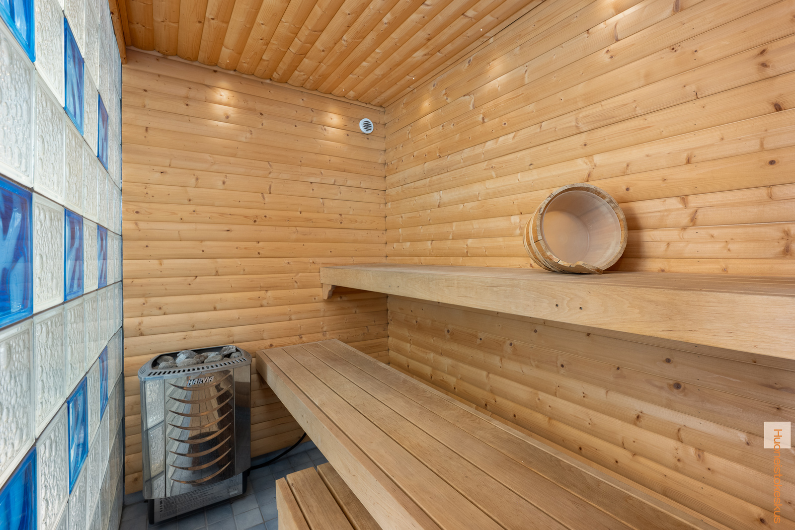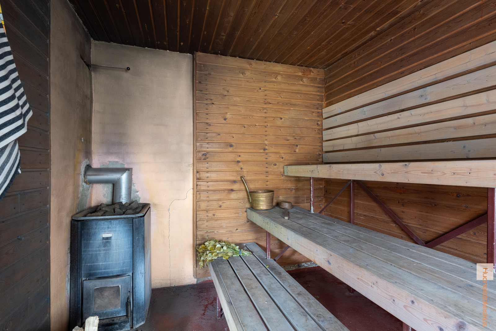 | Saunan kuvaus | Seinät (paneeli), lattiat (laatta), Puukiuas, Pihasaunassa puukiuas. Sisäsaunassa sähkökiuas. |