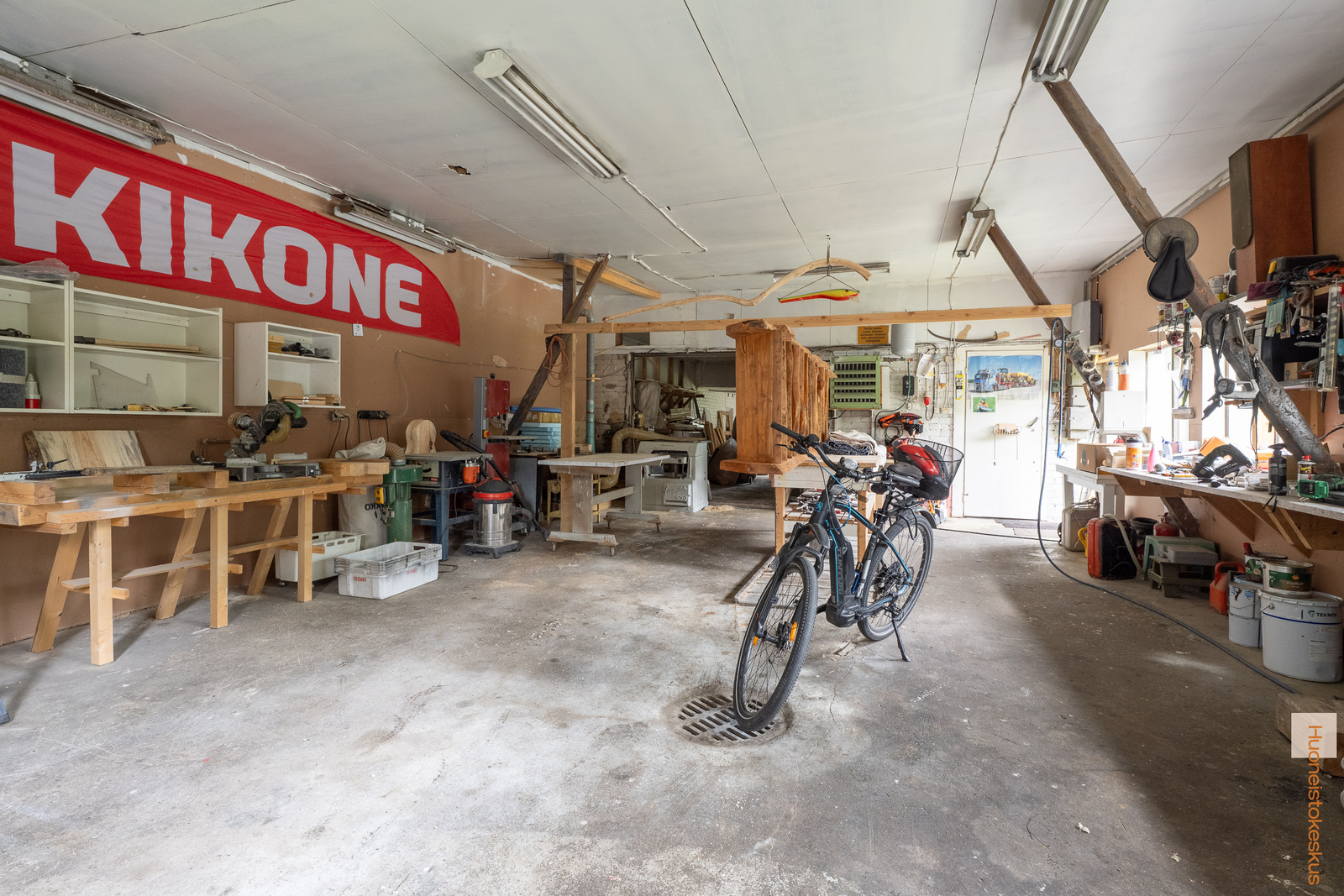 1950-luvulla rakennetussa talousrakennuksessa on hyvät autotalli-/verstas- ja saunatilat. Rakennuksen katolle on asennettu 3,5 kWh:n aurinkopaneelit10 kpl.