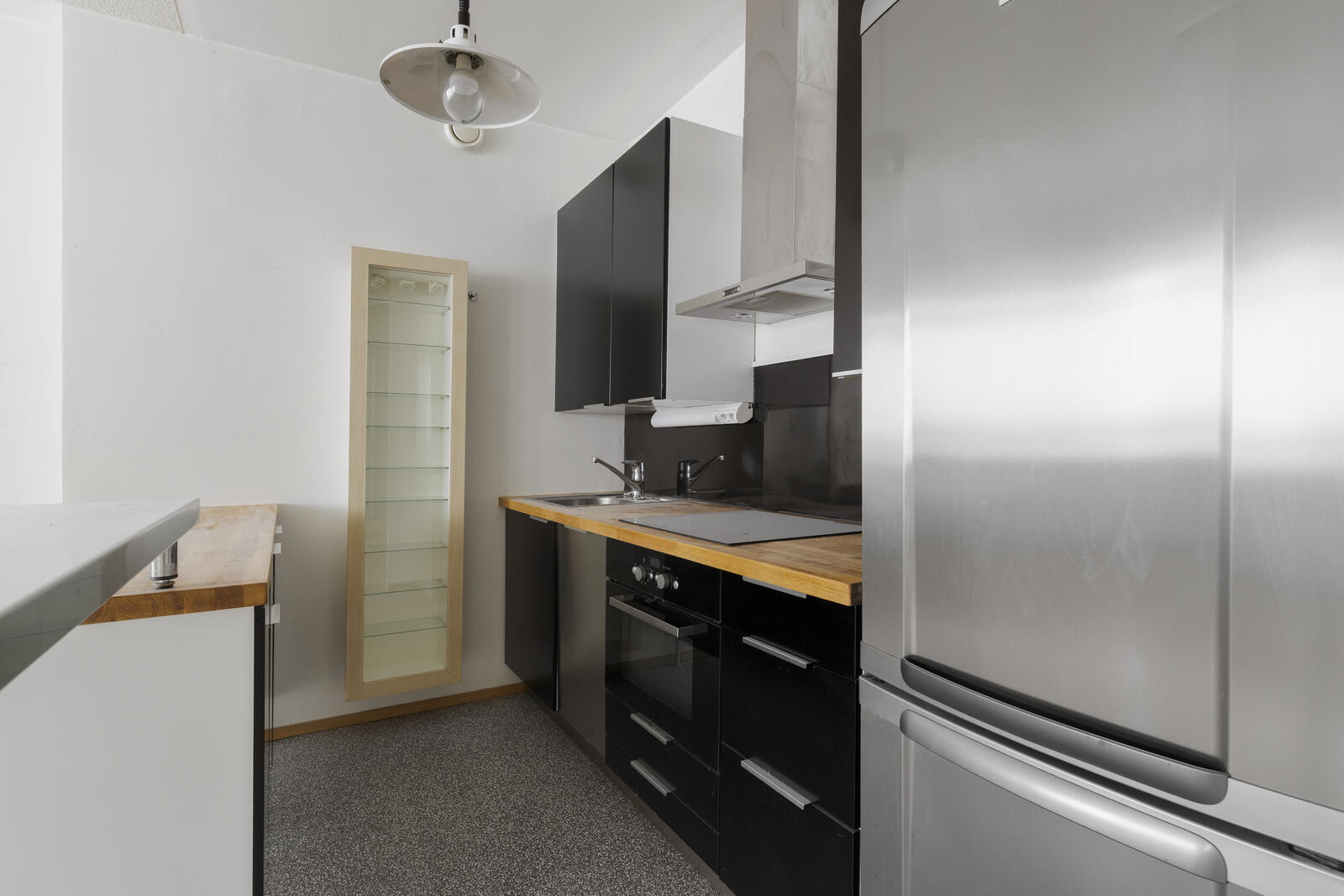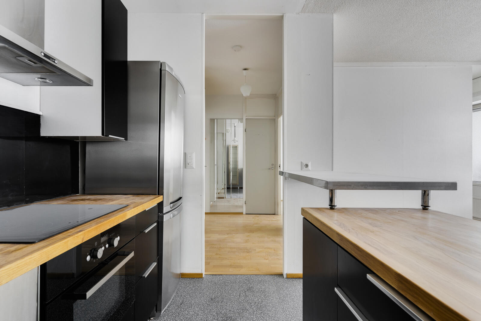 | Keittiön kuvaus | Liesi (Induktioliesi), seinät (maali), lattiat (muovimatto), jääkaappipakastin, erillisuuni, liesituuletin ja astianpesukone |