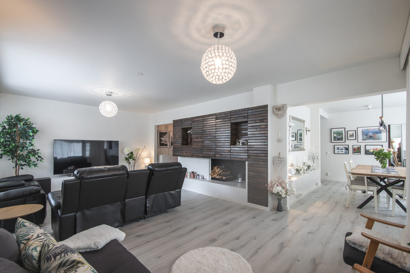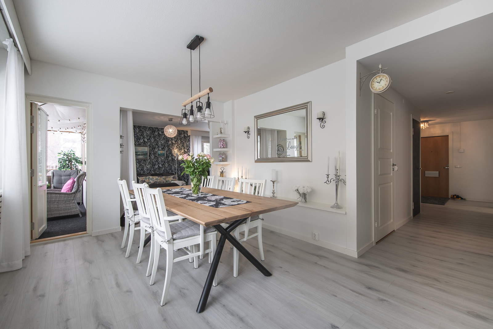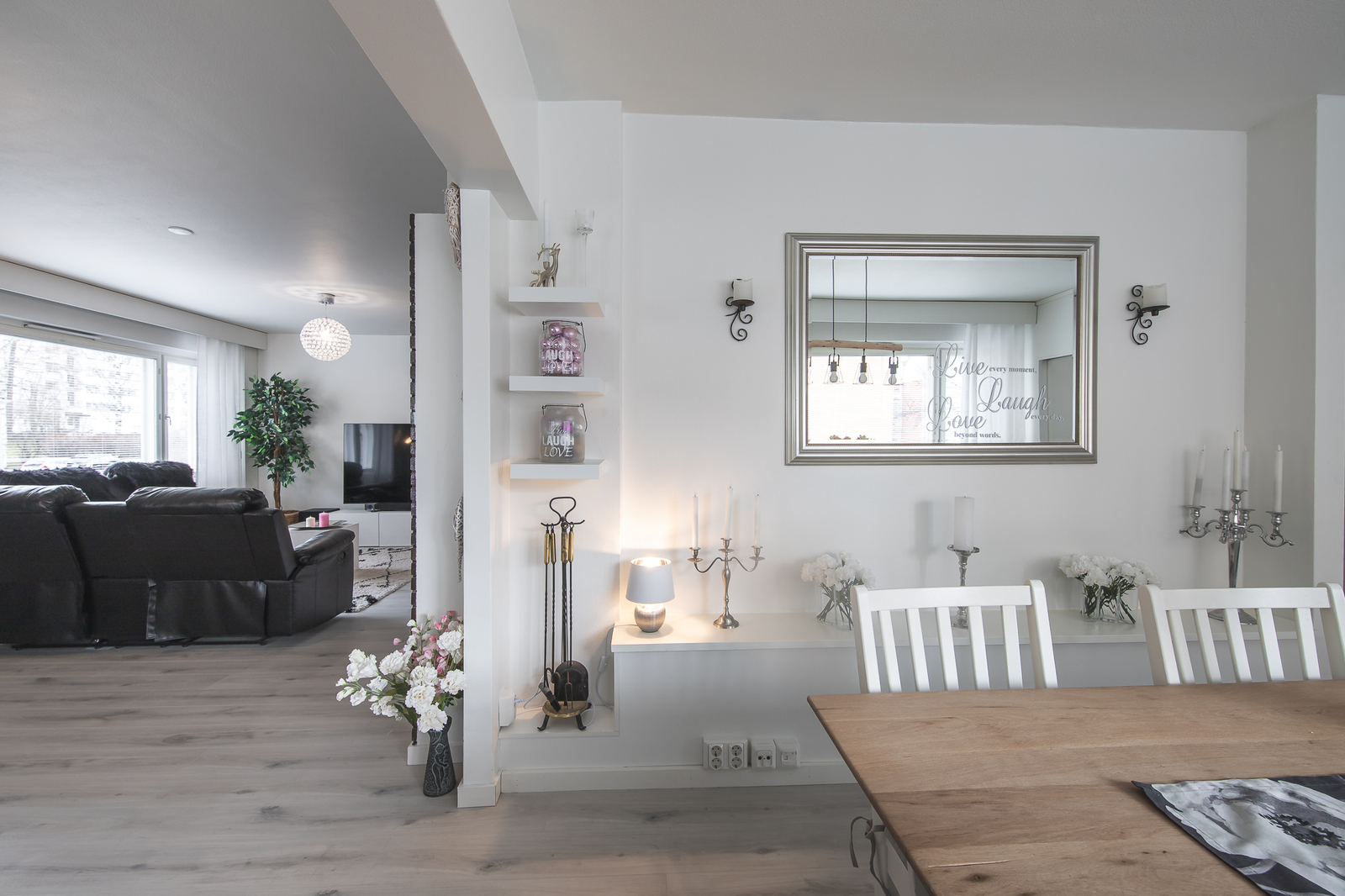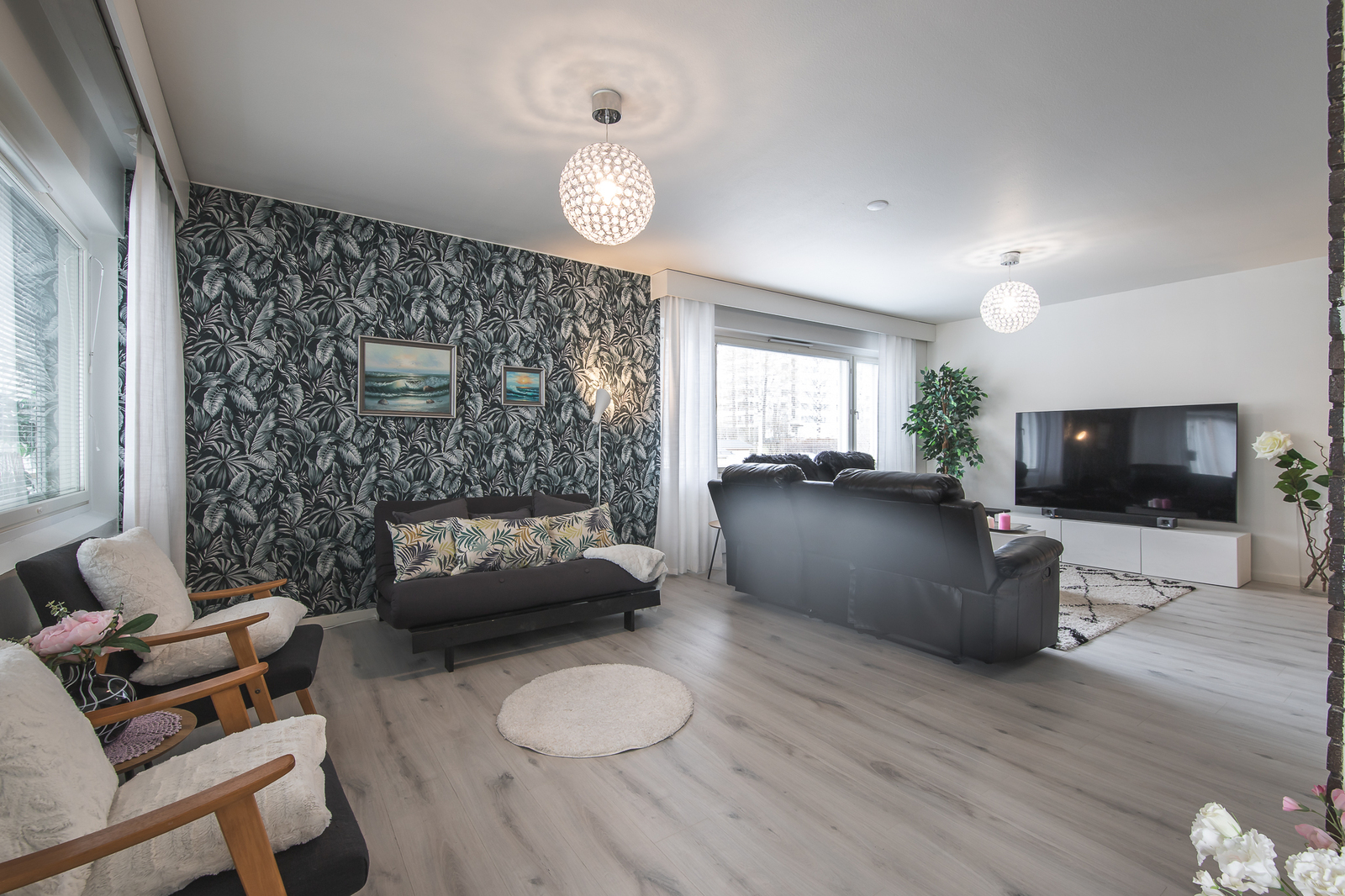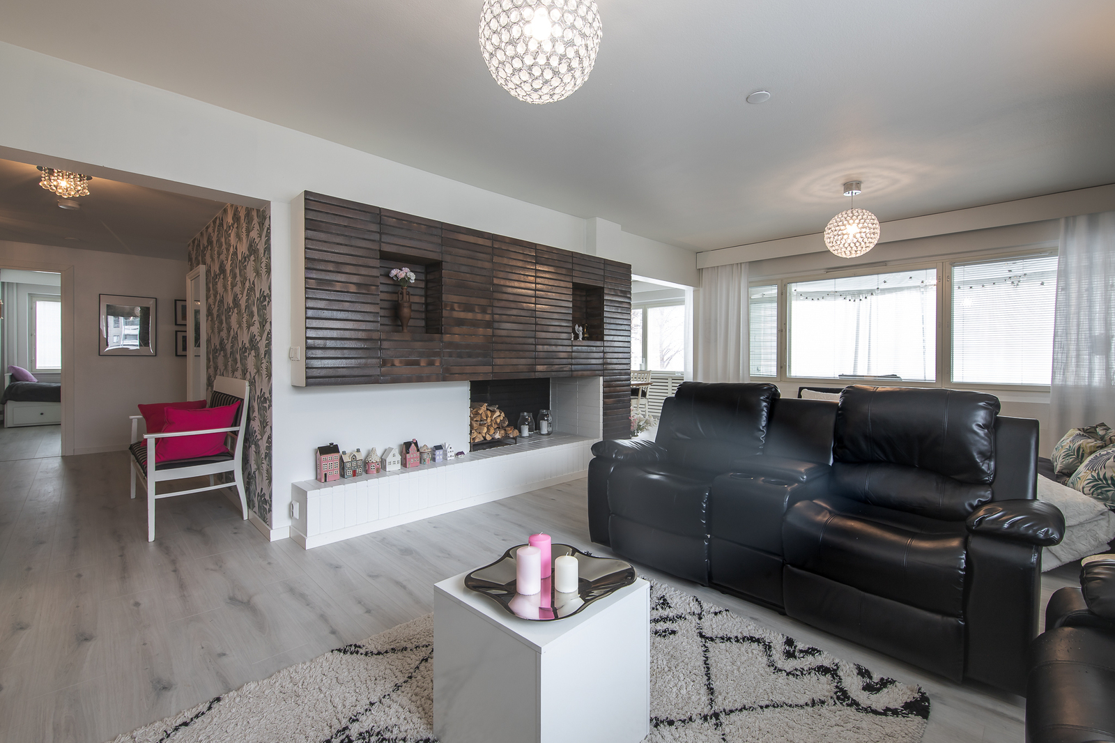 Tästä kodista löytyy kolme hyvänkokoista makuuhuonetta, tilava ja avara olohuone jossa tunnelmaa antaa puulämmitteinen takka. Ruokailutilaan sopii hyvänkokoinen pöytäryhmä ja se on sopivasti toimivan, sekä käytännöllisen keittiön lähettyvillä.