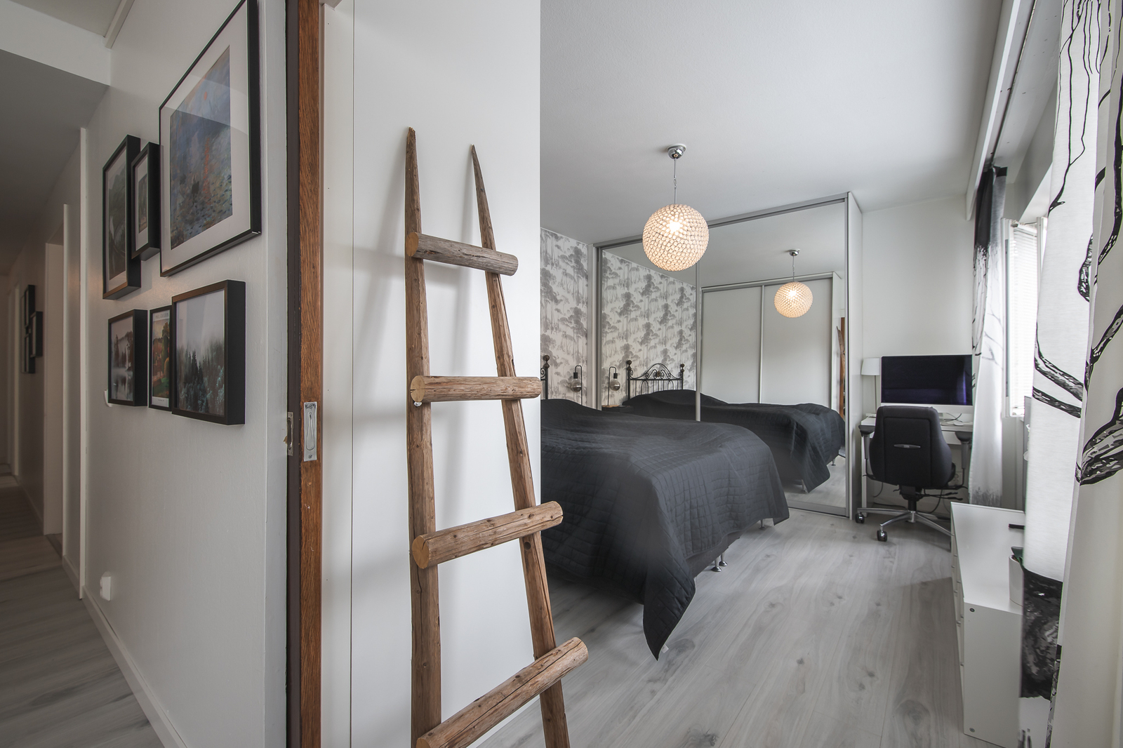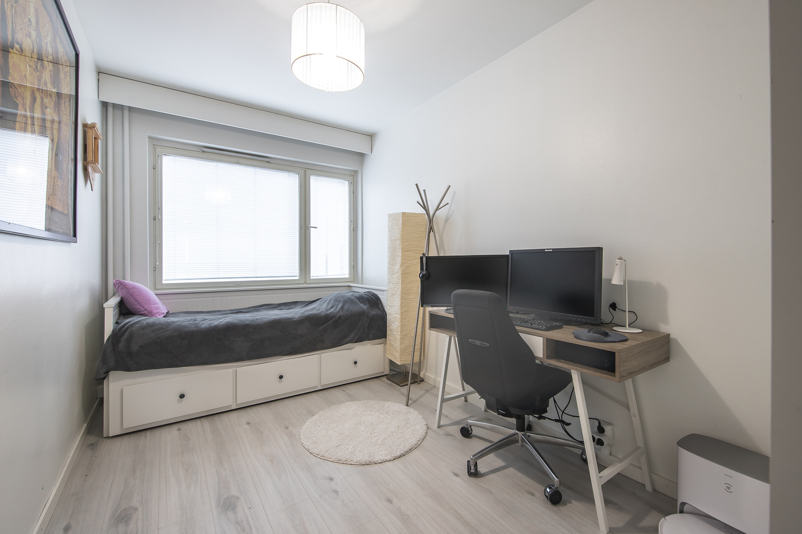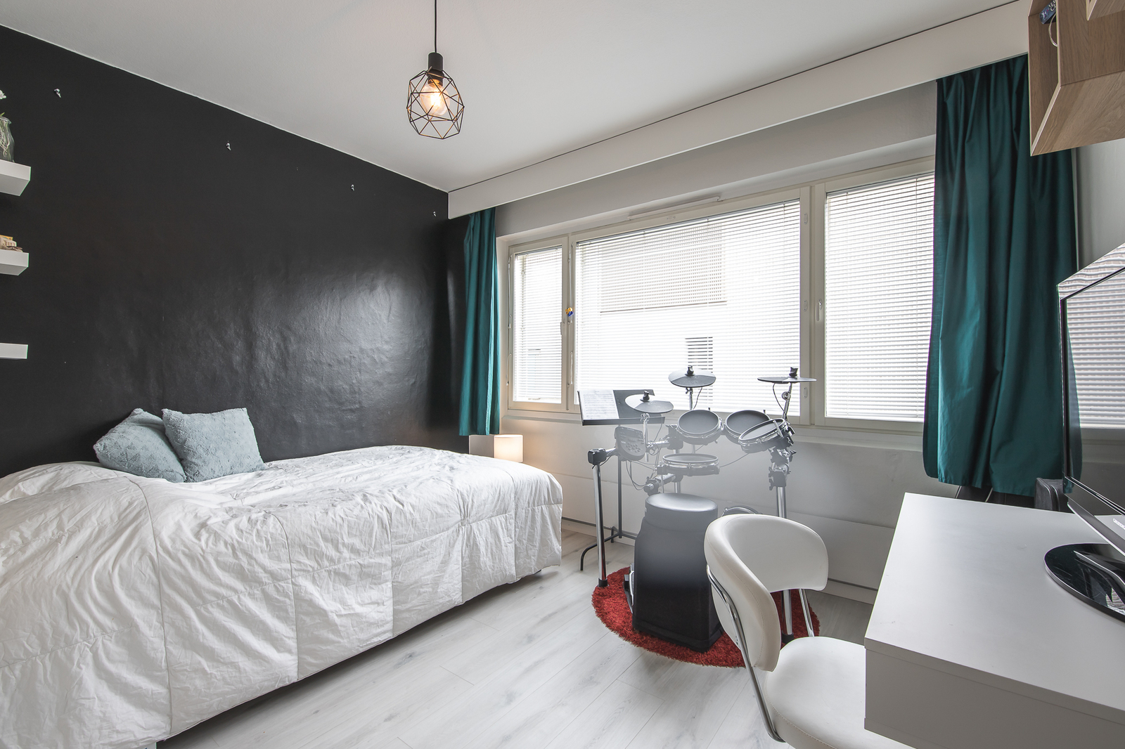 Lukumäärä: 3, lattiat (laminaatti), Päämakuuhuoneessa seinissä maalia ja tapettia, kahdessa muussa makuuhuoneessa seinät ja katot maalattu. |