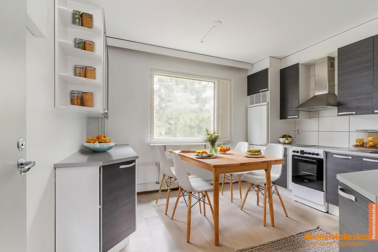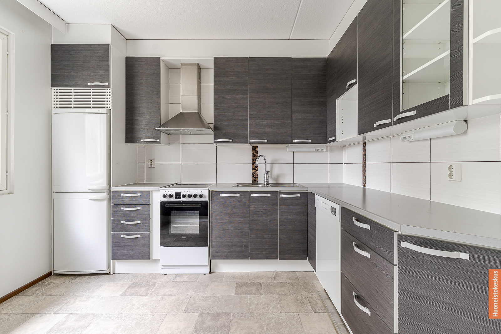 Läpitalonkodissa on toimiva pohjaratkaisu, sillä asunnon kaksi makuuhuonetta eivät ole vierekkäin taaten näin parempaa rauhaa molempiin tiloihin. Olohuone on mukavan kokoinen ja sieltä on käynti lasitetulle parvekkeelle, johon paistaa mukavasti aurinko. Keittiö on remontoitu 2011 ja kaappi- sekä laskutilaa on hyvin. Keittiöön mahtuu hyvin ruokailuryhmä. Kylpyhuone remontoidaan kokonaisuudessaan tulevassa linjasaneerauksessa.