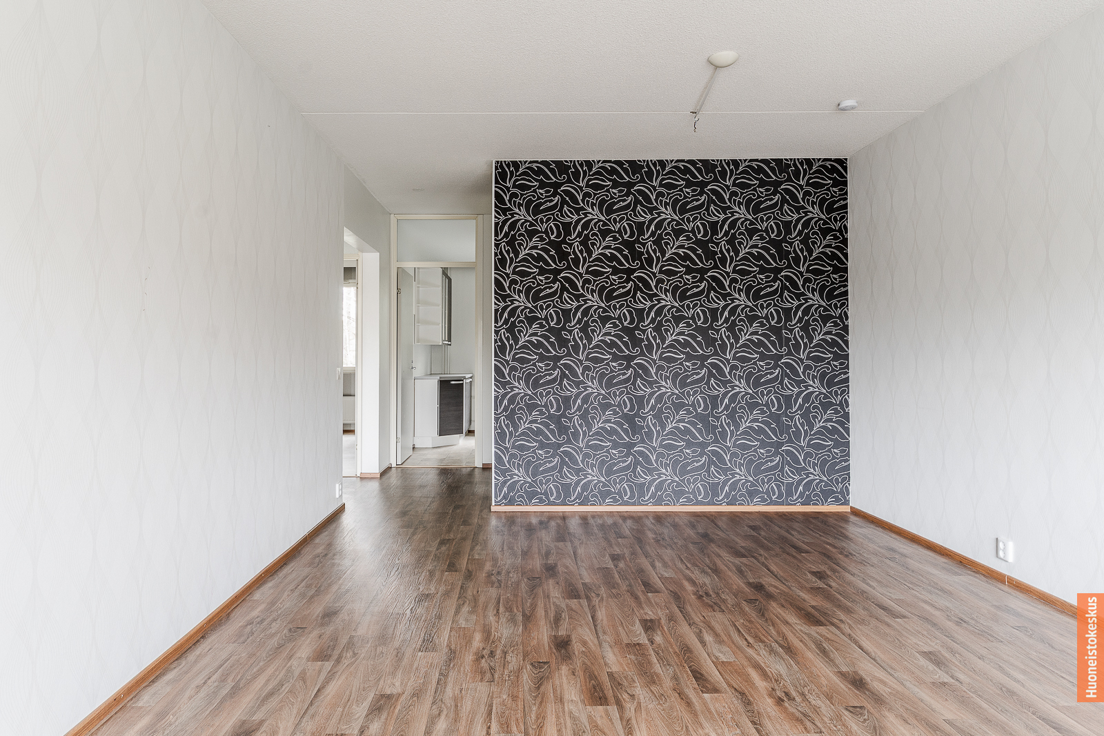 | Olohuoneen kuvaus | Seinät (tapetti), lattiat (muovimatto) |