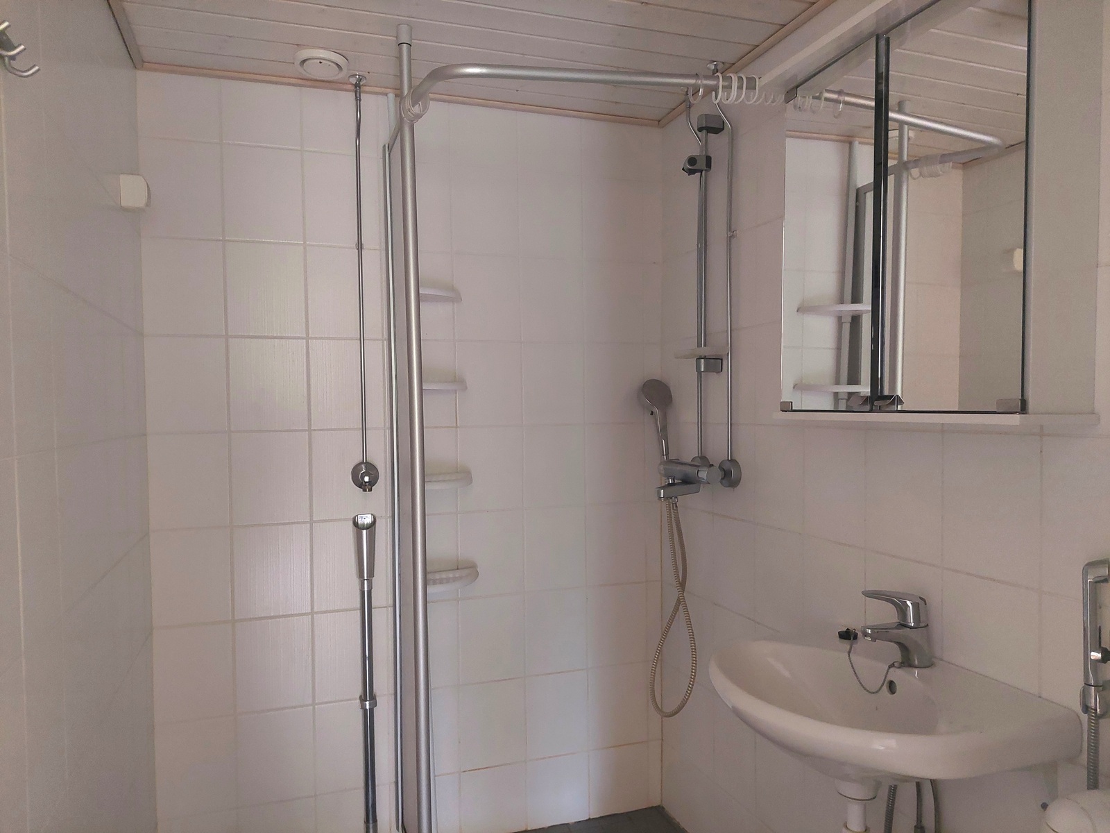| Kylpyhuoneen kuvaus | WC-istuin, pesukoneliitäntä, peilikaappi ja suihku, seinät (kaakeli), lattiat (laatta) |