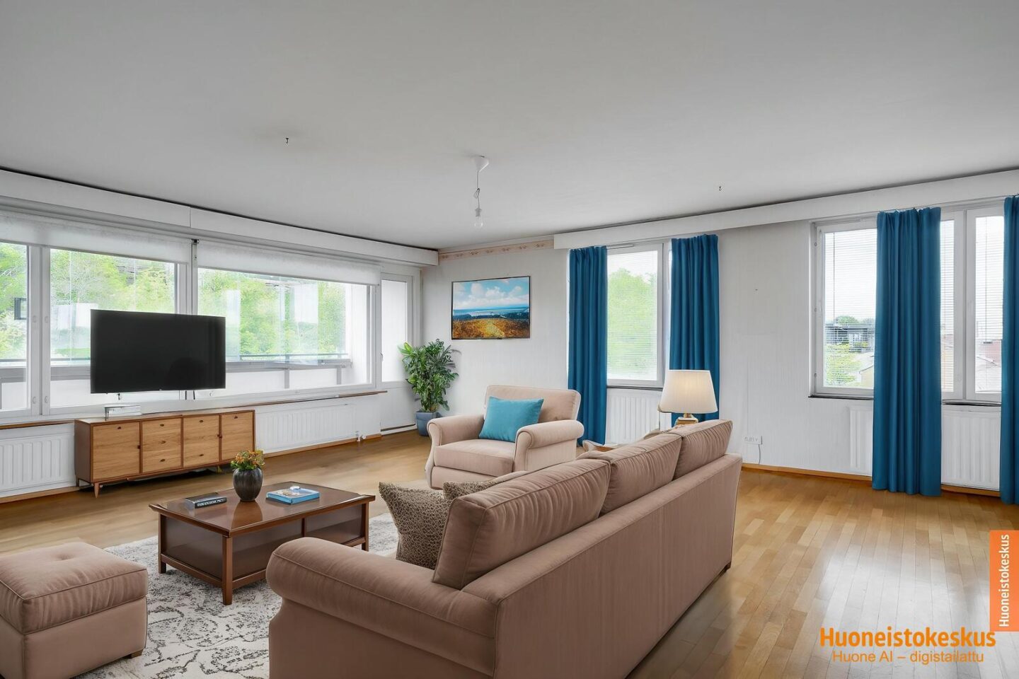 Asunnon sydän on tilava olohuone, jonka yhteydessä on erillinen ruokailuhuone. Ruokailuhuone toimii joustavasti myös neljäntenä makuuhuoneena, mikäli lisähuoneelle on tarvetta. Neljästä makuuhuoneesta kahdessa on vaatehuone, mikä lisää asumismukavuutta ja säilytystilaa. Olohuoneesta ja yhdestä makuuhuoneesta on kulku lasitetulle, noin 13 metriä pitkälle parvekkeelle, jolta avautuvat kauniit näkymät viereiseen puistoon ja Vartiovuoren tähtitorniin. Keittiö on oma erillinen tilansa ja myös sinne mahtuu hyvin ruokailuryhmä. Kylpyhuoneen yhteydessä on asunnon toinen vessa. Säilytystilaa on hyvin, sillä eteisessä on isot kaapistot ja asuntoon kuuluu kaksi isoa varastoa.