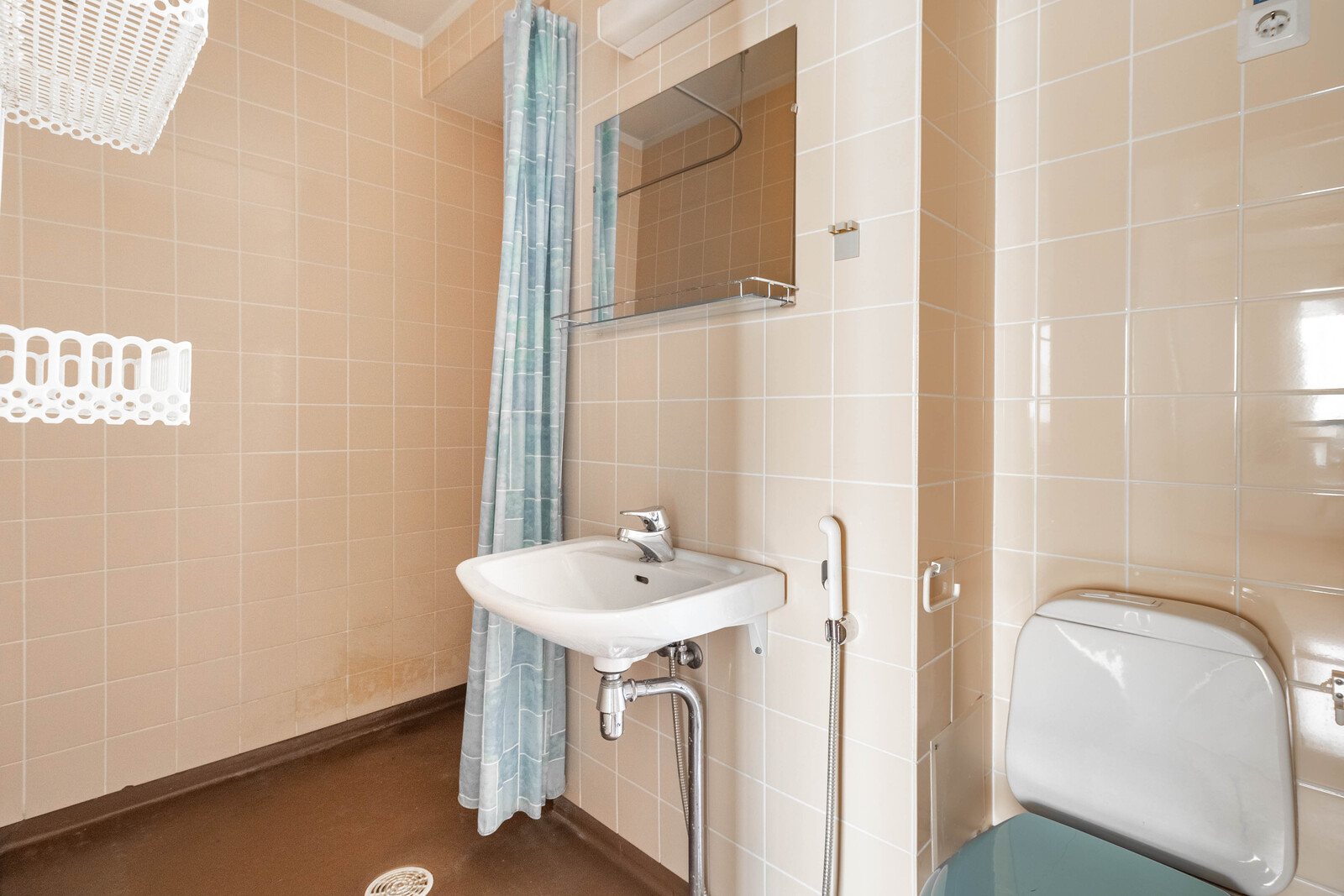 Pesukoneliitäntä, suihku, peili, wc-istuin ja asennettuja erikoisvarusteita, kiinteät valaisimet, seinät (kaakeli), lattiat (muovimatto) |